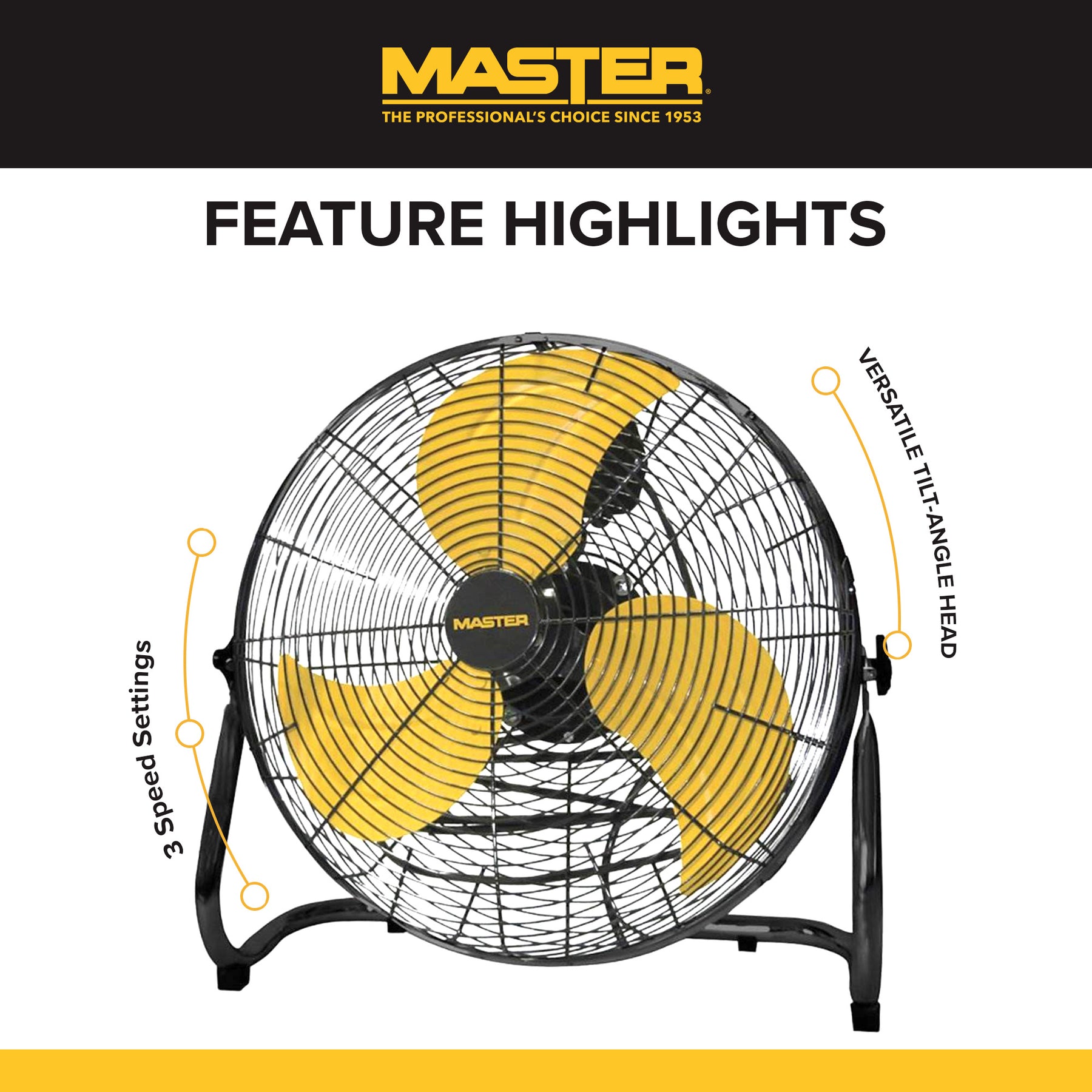 Efficient, durable, and easy to use, the Master 20-Inch High-Velocity Floor Fan is built to perform. Whether tackling tough jobs or beating the summer heat, this fan is your dependable copmanion.