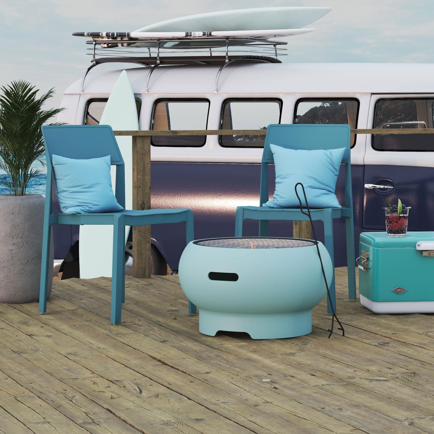 Novogratz Asher 27 Inch Wood Burning Fire Pit with Grilling Surface, Aqua Haze