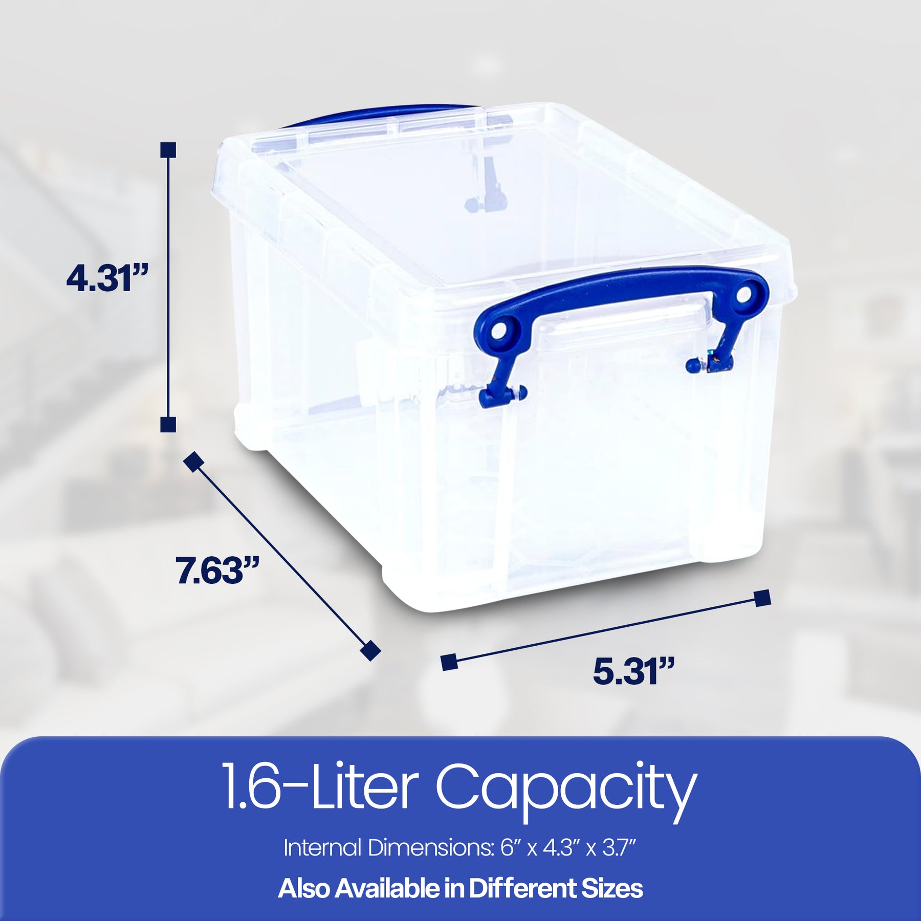 Really Useful Box 1.6L Storage Container w/Snap Lid & Clip Lock Handle, (4 Pack)