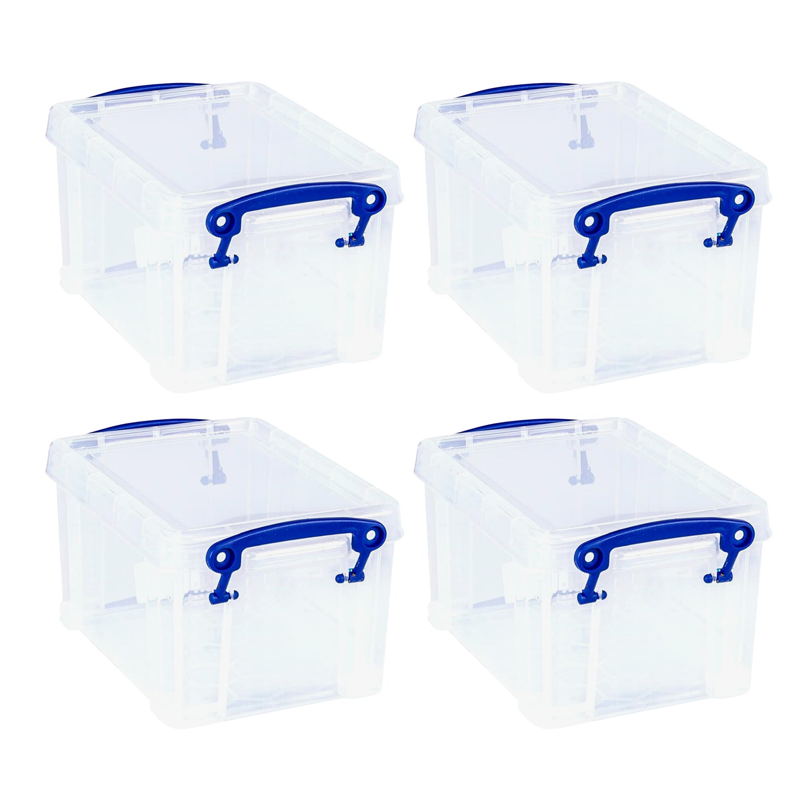 Be a master of home storage and organization with the reliable Really Useful Box Storage Containers. This package of 4 1.6-liter bins will conveniently meet your organizing needs by providing enough room to store various items in your home or office.