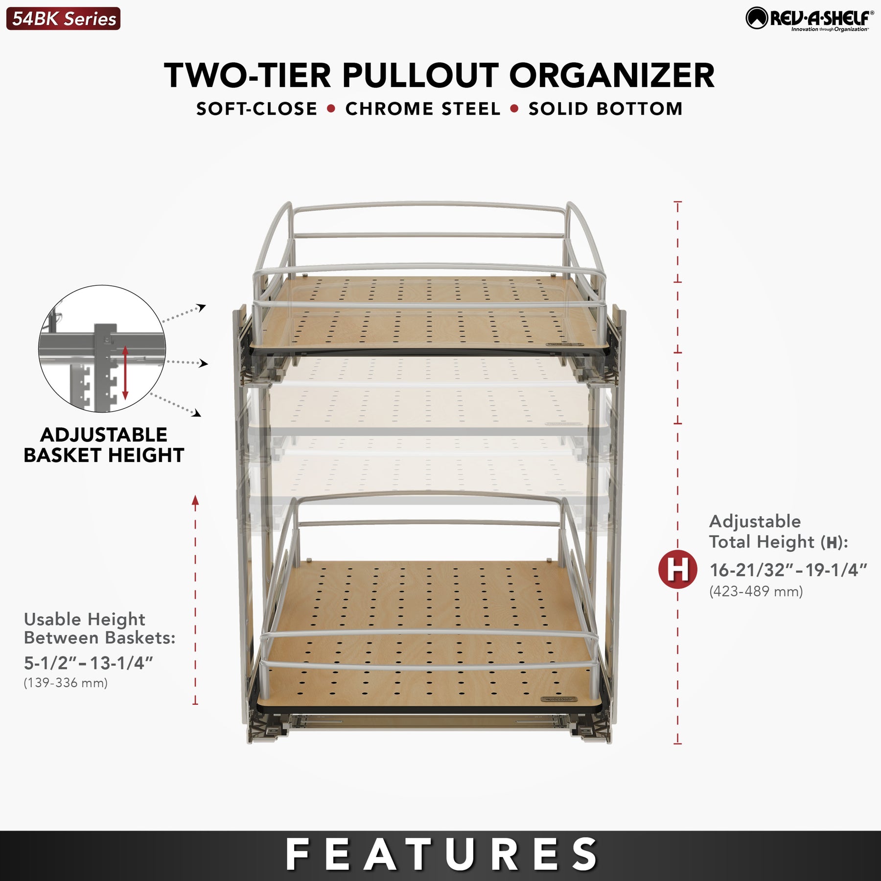 Rev-A-Shelf Two-Tier Solid Bottom Pullout Base Cabinet Organizer, 54BK-15SC-2-1