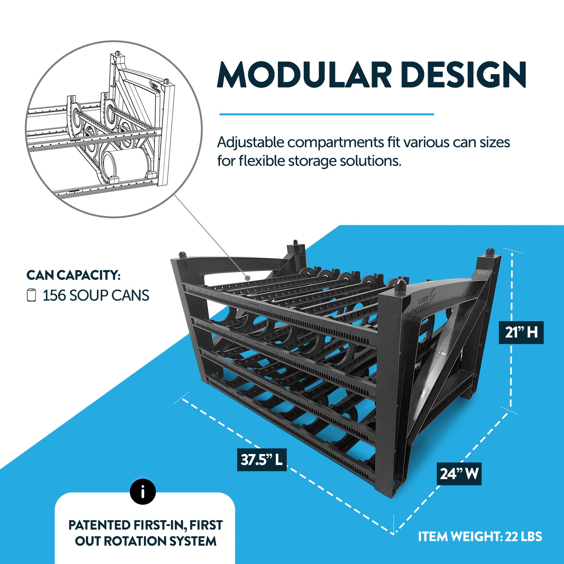 - Accommodating up to 156 soup or small food cans, this organizer streamlines your storage space; Suitable for canned goods up to 3 inches in diameter