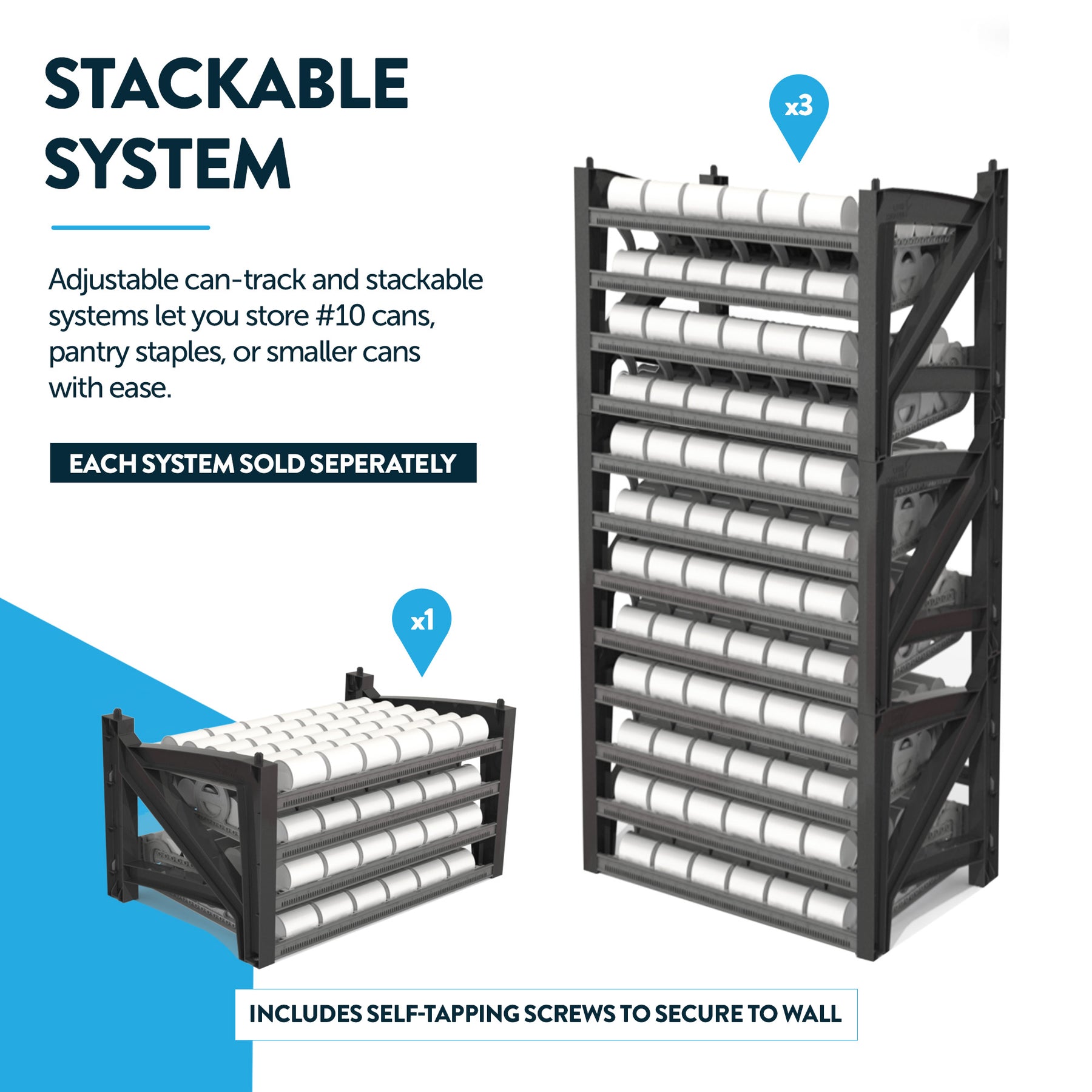 The Cansolidator Max builds on the legacy of its predecessor with a modular, user-friendly system that adapts to your unique storage needs. Whether you’re organizing #10 cans, pantry staples, soup, or tuna-sized cans, this Cansolidator Max accommodates up to 156 small cans for your storage convenience. Effortlessly assemble in just 15 minutes, and rely on the heavy-duty durability for lasting use. Stackable, adjustable, and easy to customize, this new design allows you to create scalable storage solutions that grow with you.