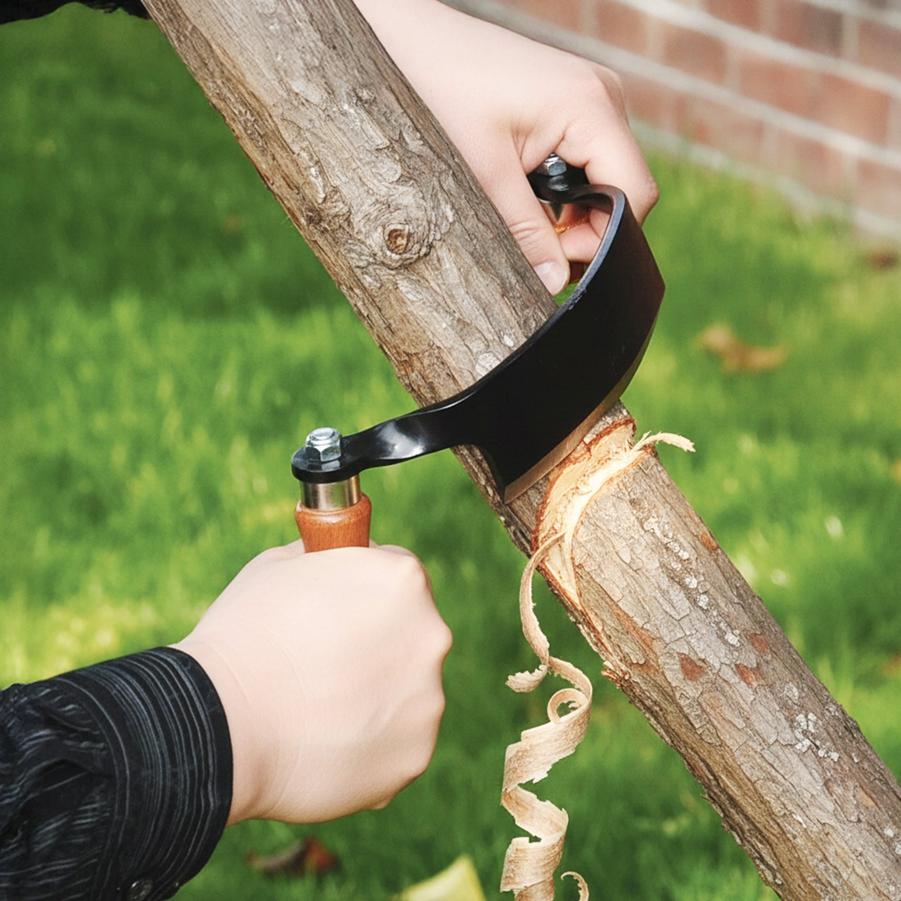 Crafted for precision, this tool is a game-changer for debarking logs, firewood, and fence posts with unparalleled ease. Its 5-millimeter ultra-sharp blade, set at a 30-degree angle, effortlessly shaves bark and wood, demanding minimal exertion from you. Constructed from heavy-duty steel boasting an impressive HRC 30 hardness, durability, and reliability are embedded in its core. Comfort isn’t compromised, as the ergonomic wooden handles ensure a secure grip, reducing fatigue during extended use. Security is always a priority, and the blade protector not only preserves sharpness but also shields you from accidental nicks and cuts. When the blade requires sharpening, a simple pass with a stone restores its keen edge, maintaining precision and efficiency plus making maintenance truly a breeze. Whether debarking or crafting furniture, this draw shave exceeds expectations, delivering consistent, flawless results. Transform logs into refined pieces effortlessly, while its adaptability for furniture building unveils a world of creative possibilities.