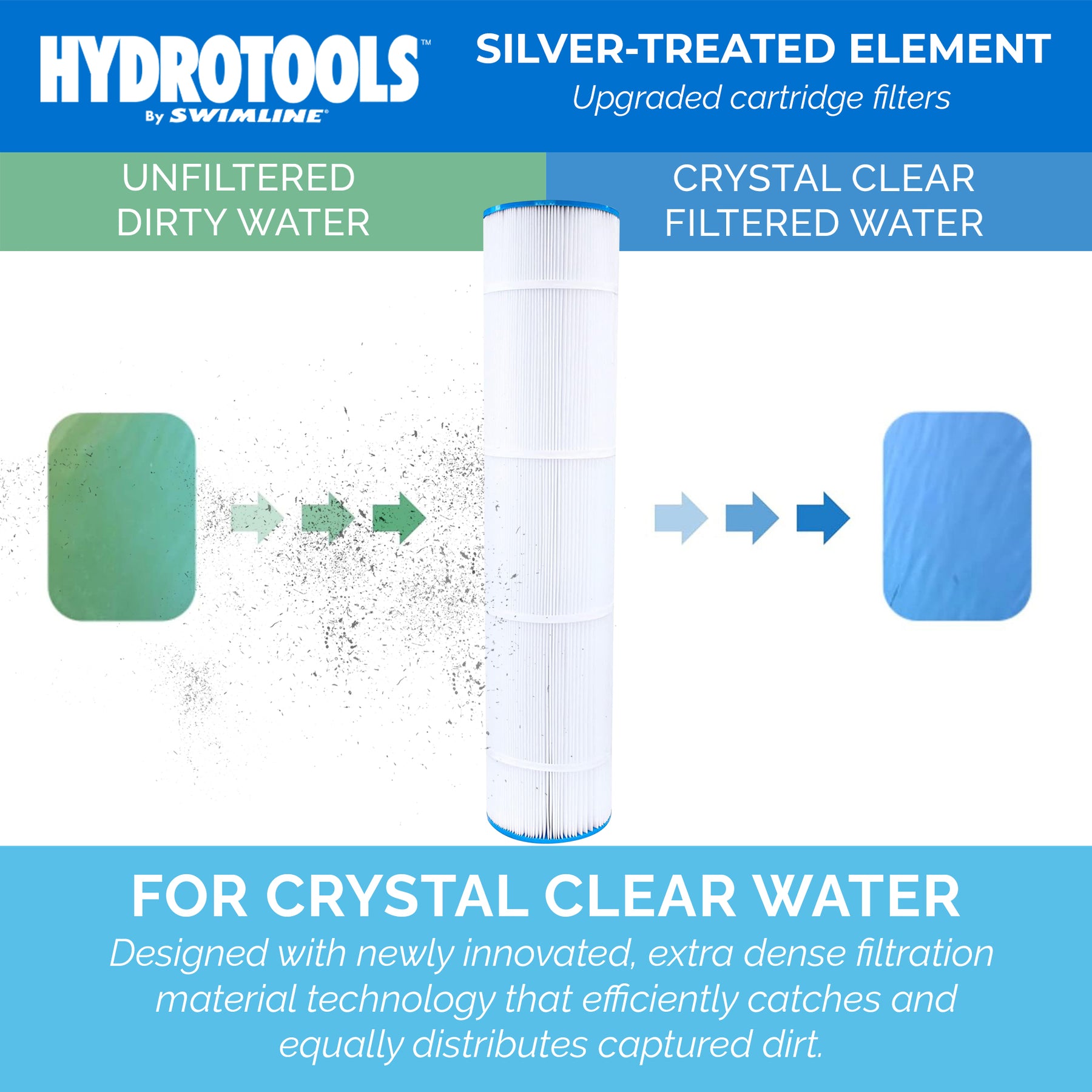 - Achieve crystal-clear water with HydroTools technology that filters debris as small as 50 microns, effectively capturing hair, leaves, dust, sediment, and sand for a pristine swimming experience