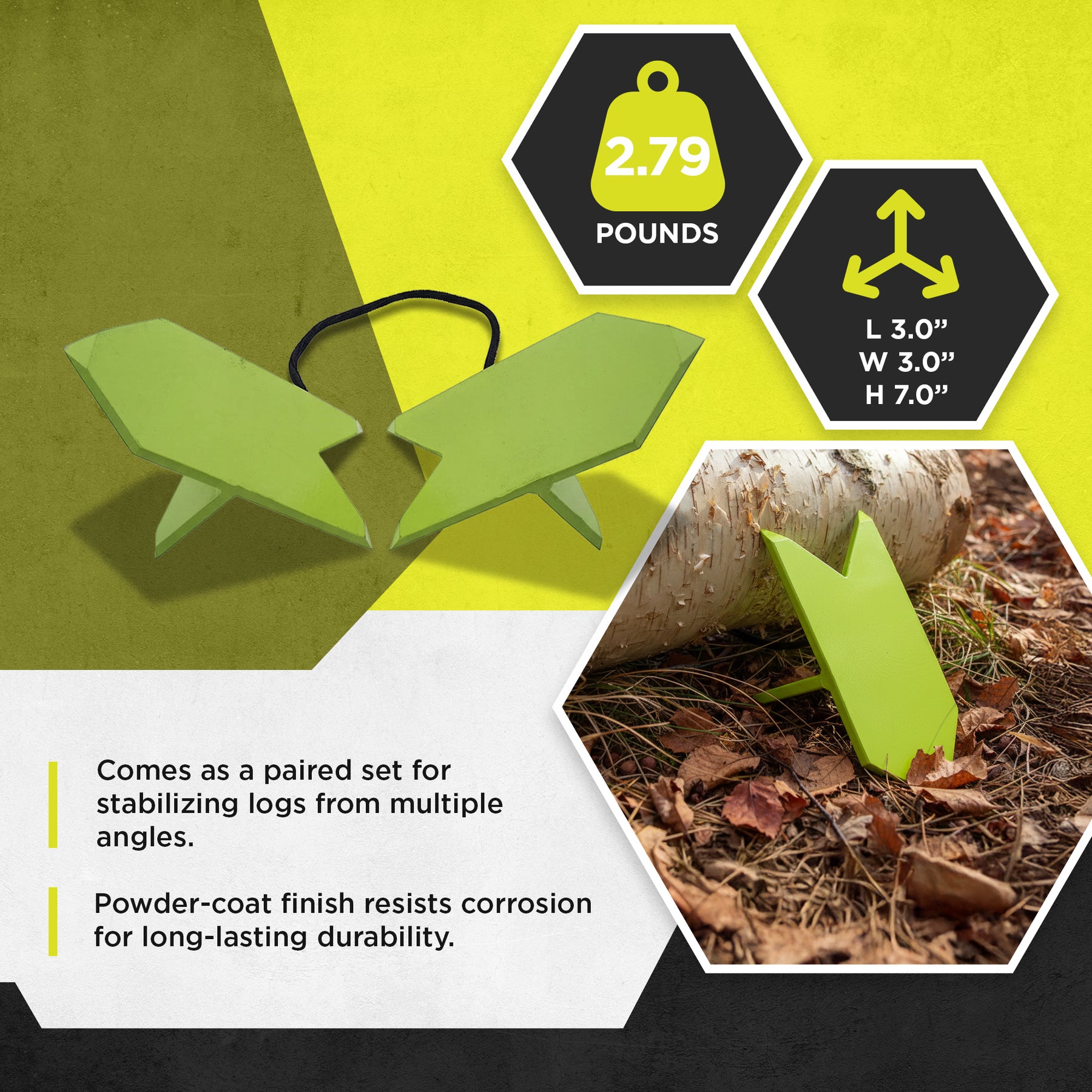 The bright green color makes the log dogs easily visible, especially in heavily wooded settings, for added awareness to prevent loss and promote safe conditions for anyone along for the work. Constructed of heavy-duty steel and a durable rope, you can rest assured that your log dogs will stay together and always be easy to find, transport, and store.
