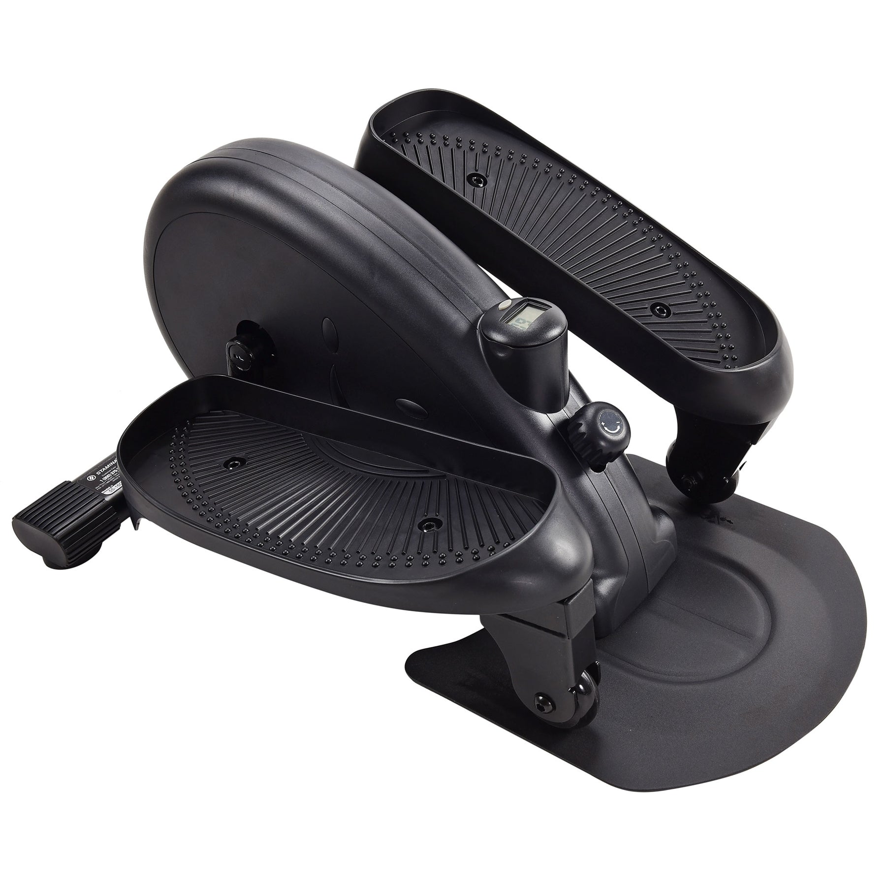- Elliptical strider machine can be used while sitting or standing for a low-impact cardio session anytime, anywhere