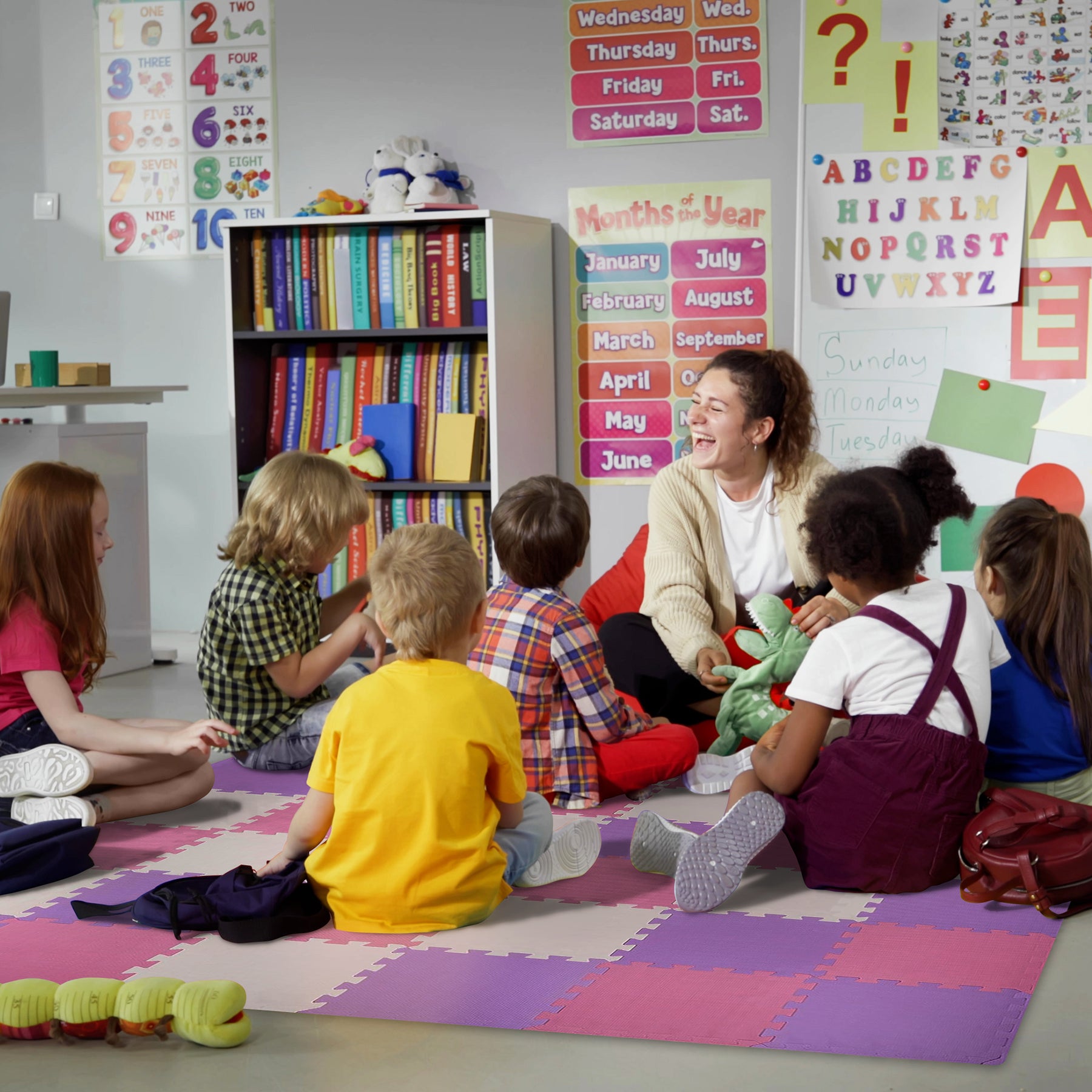 Transform your daycare, home playroom, or after-school program with the BalanceFrom Fitness 16-Tile Extra Thick Interlocking Puzzle EVA Foam Exercise Play Mat.
