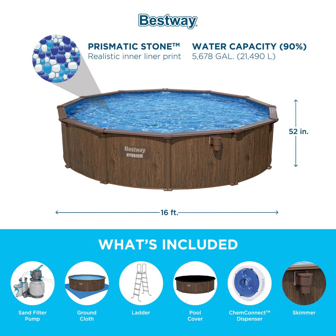 Bestway Hydrium 16’ x 52” Steel Wall Round Above Ground Swimming Pool Set