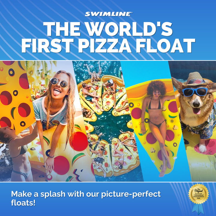 Make a splash this summer with the Inflatable Giant Pizza Slice Floating Water Raft from Swimline.