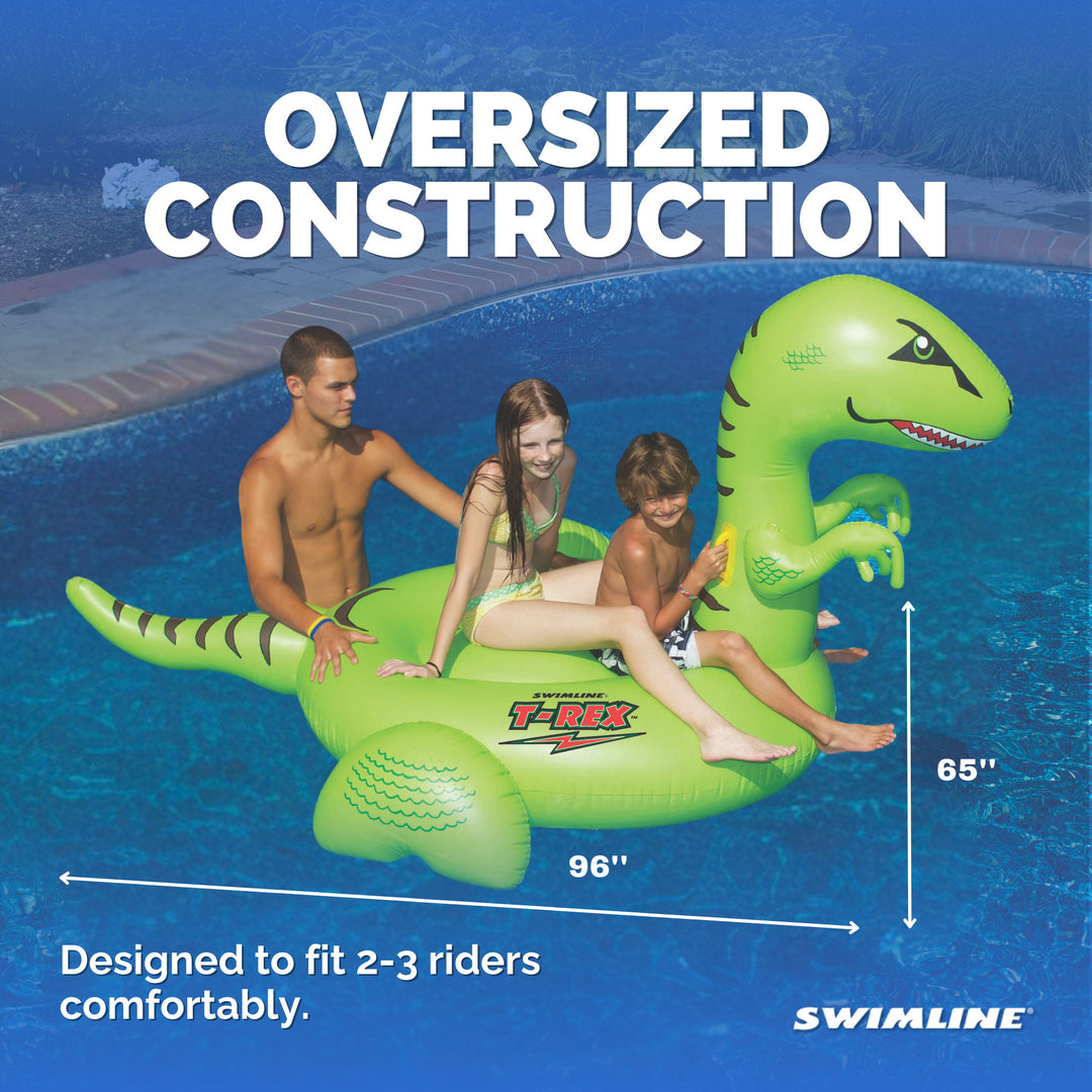 Enjoy warm summer days in the pool with your own Giant Inflatable T-Rex Dinosaur Pool Float from Swimline.