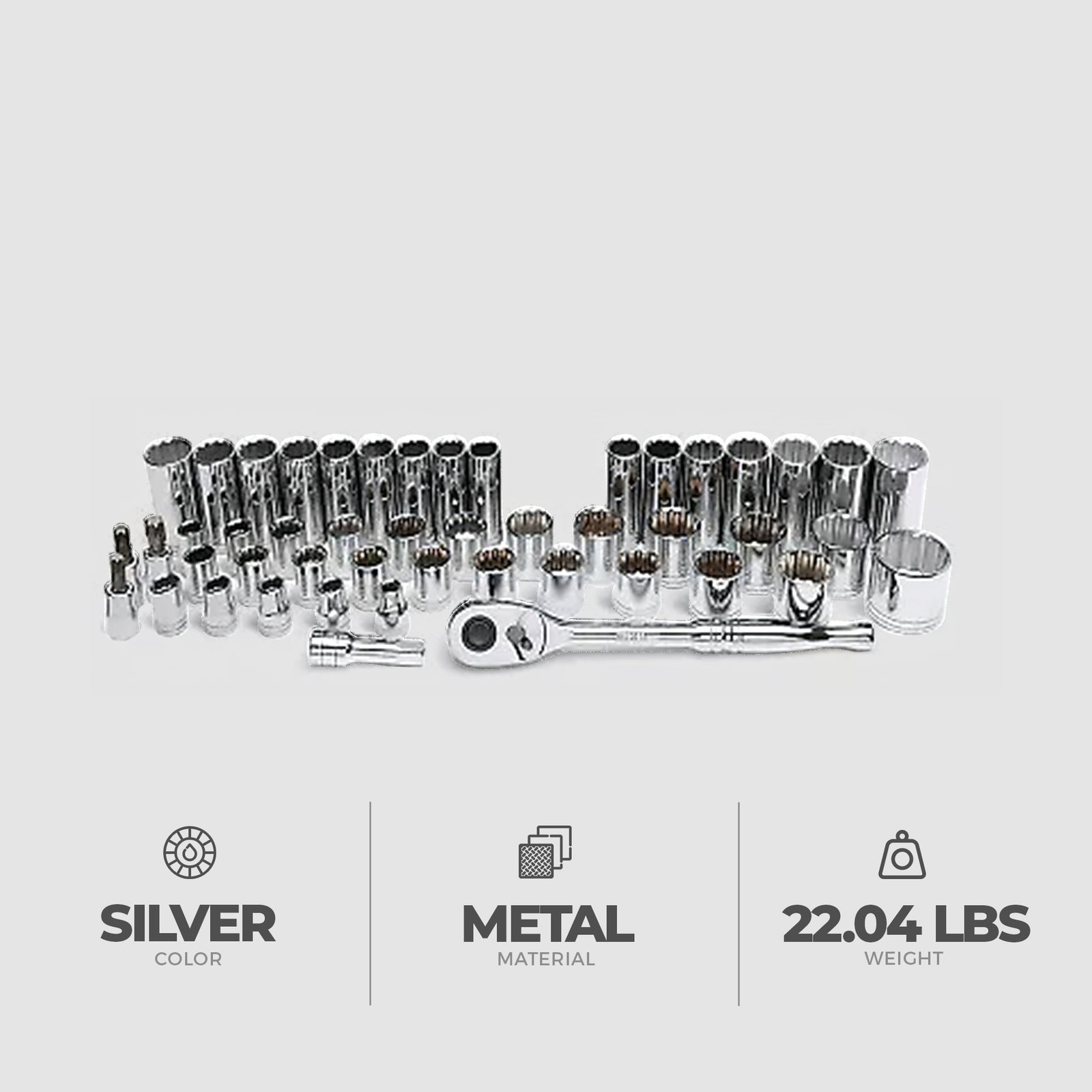 Master Mechanic 48 Piece SAE/Metric Socket Tool Set, 1/2 Inch Drive Ratchet Kit