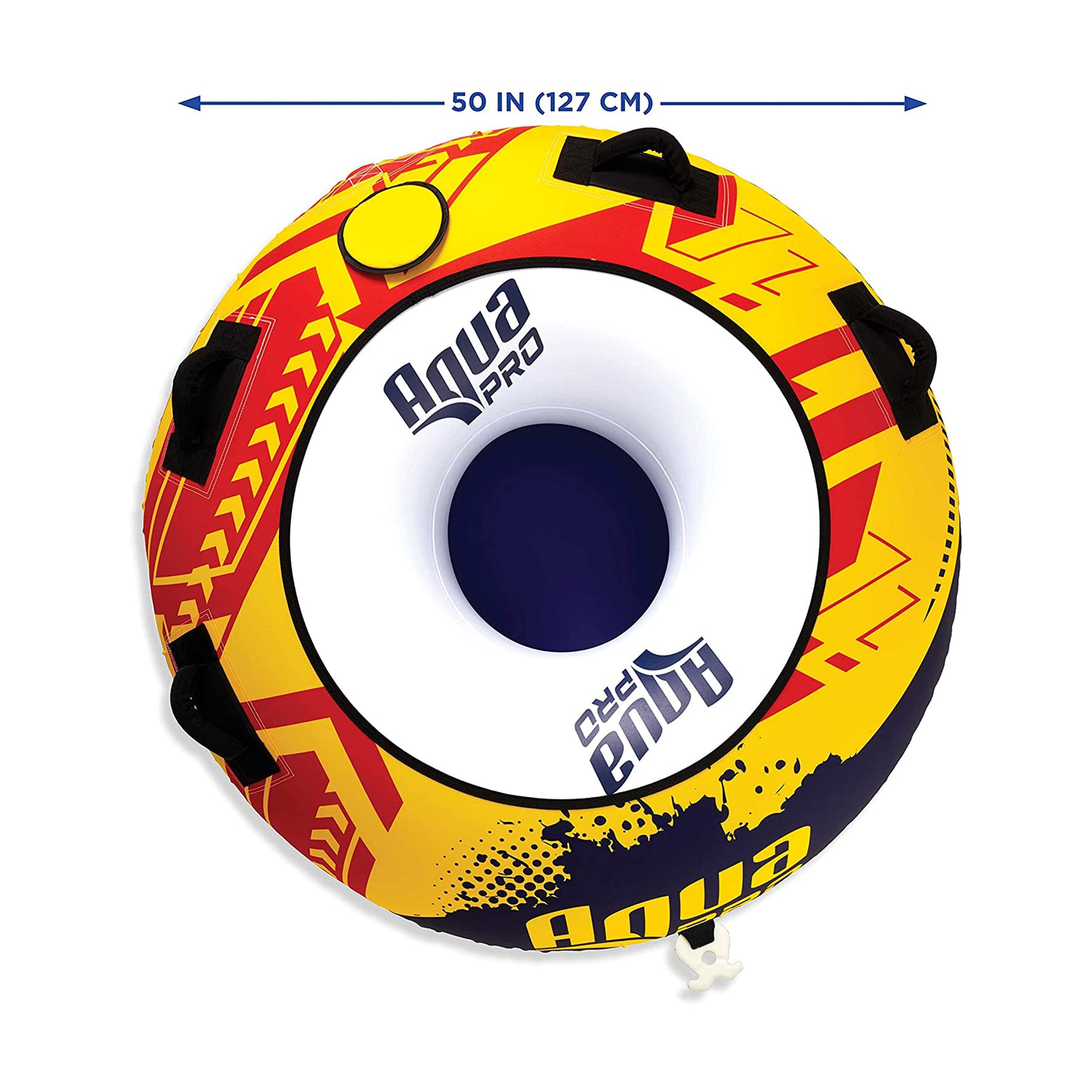 AquaPro 50 In Nylon Deck Style Towable 1 Person Rider, Yellow/Red w/ Hand Pump