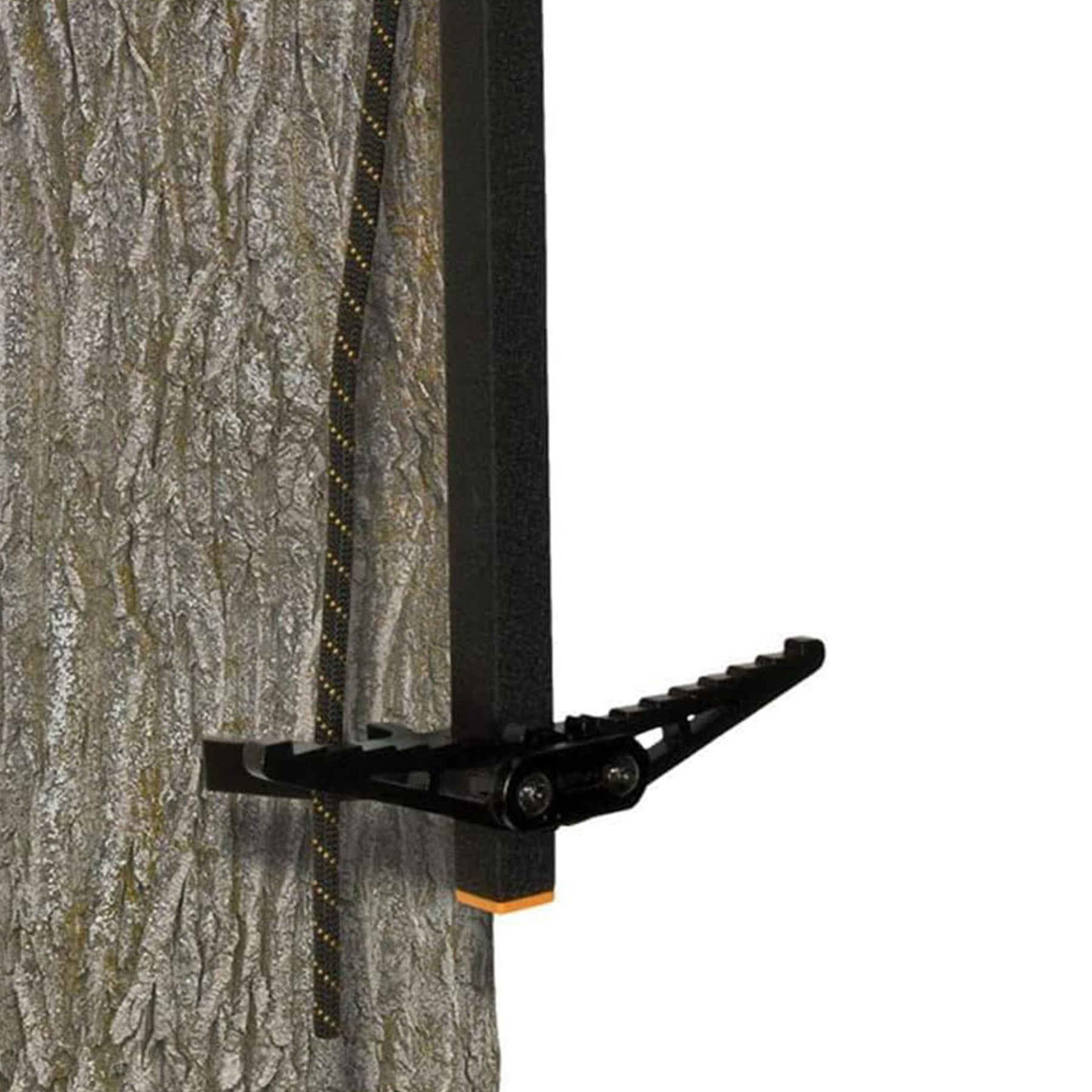 Silence, safety, and stability are essential when it comes to hunting. Accomplish all 3 with this portable tree climbing system. Equipped with safety and assembly hardware, you're guaranteed to reach your tree stand in no time using this convenient climber. Heavy-duty rigid steel construction supports up to 300 pounds.