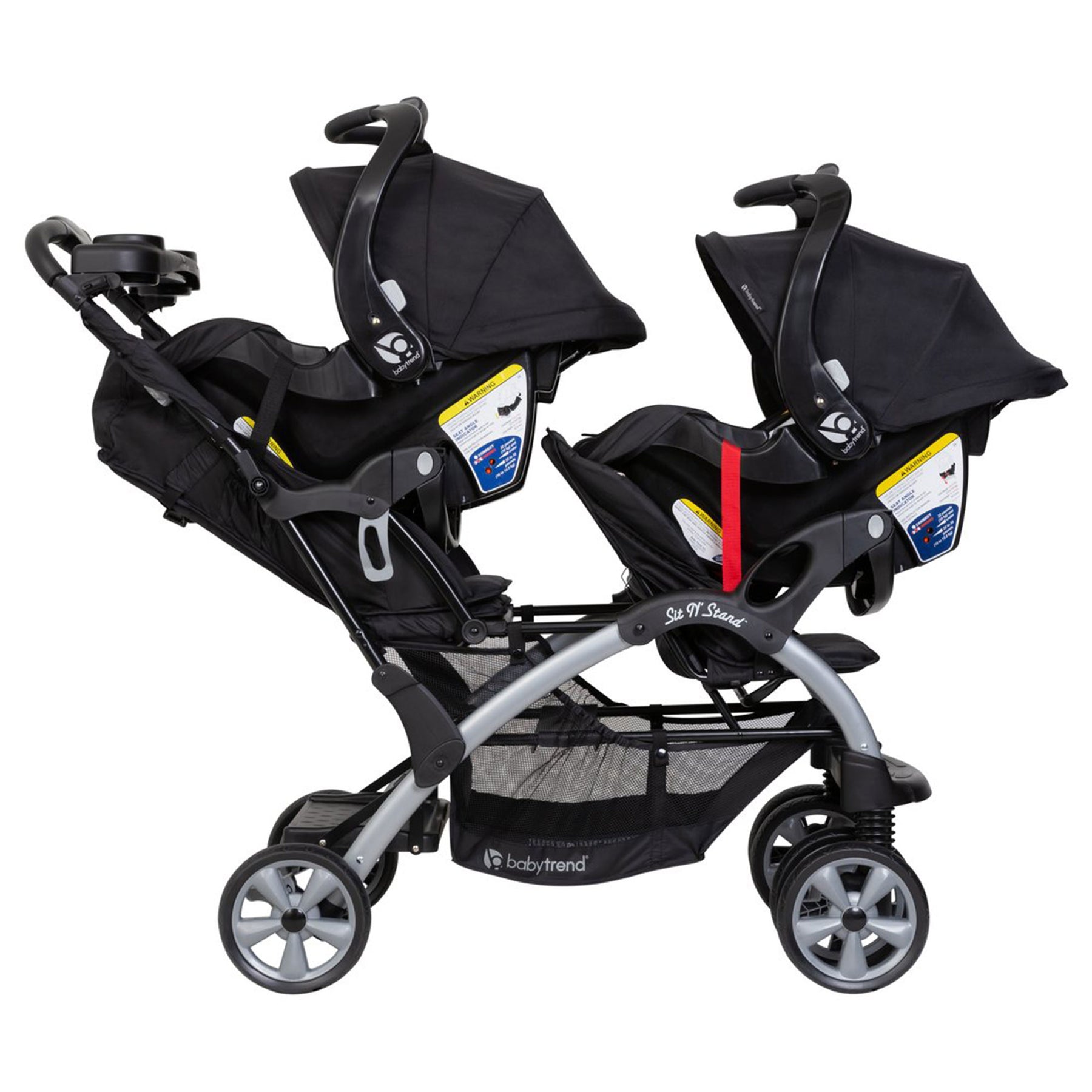 • Both seats accept infant car seats; Back seat can be removed for toddler or child to sit or stand