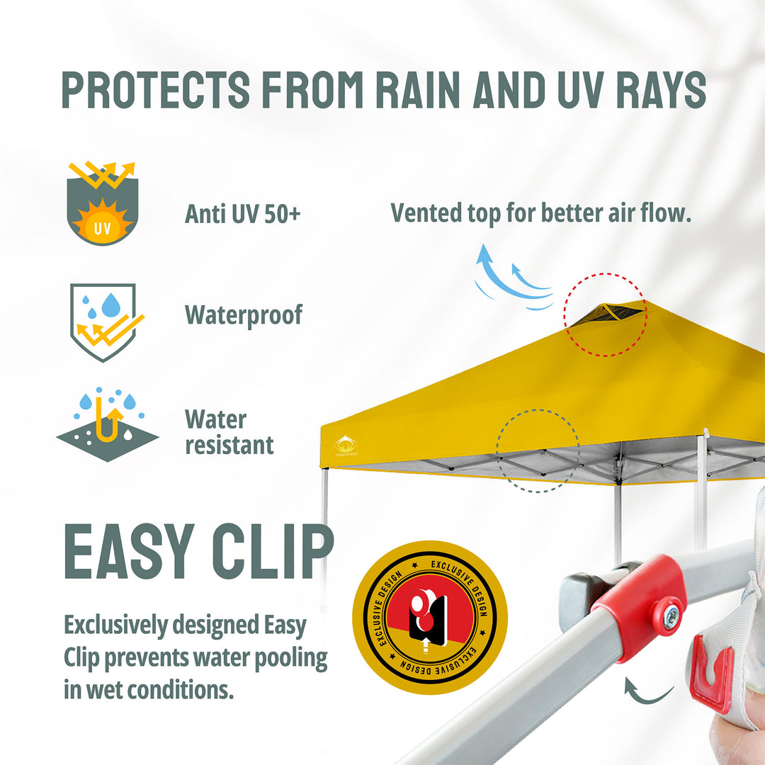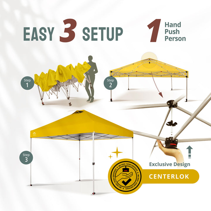 CROWN SHADES 10x10 Ft Pop Up Canopy Tent with 1 Push Center Lock, Yellow (Used)