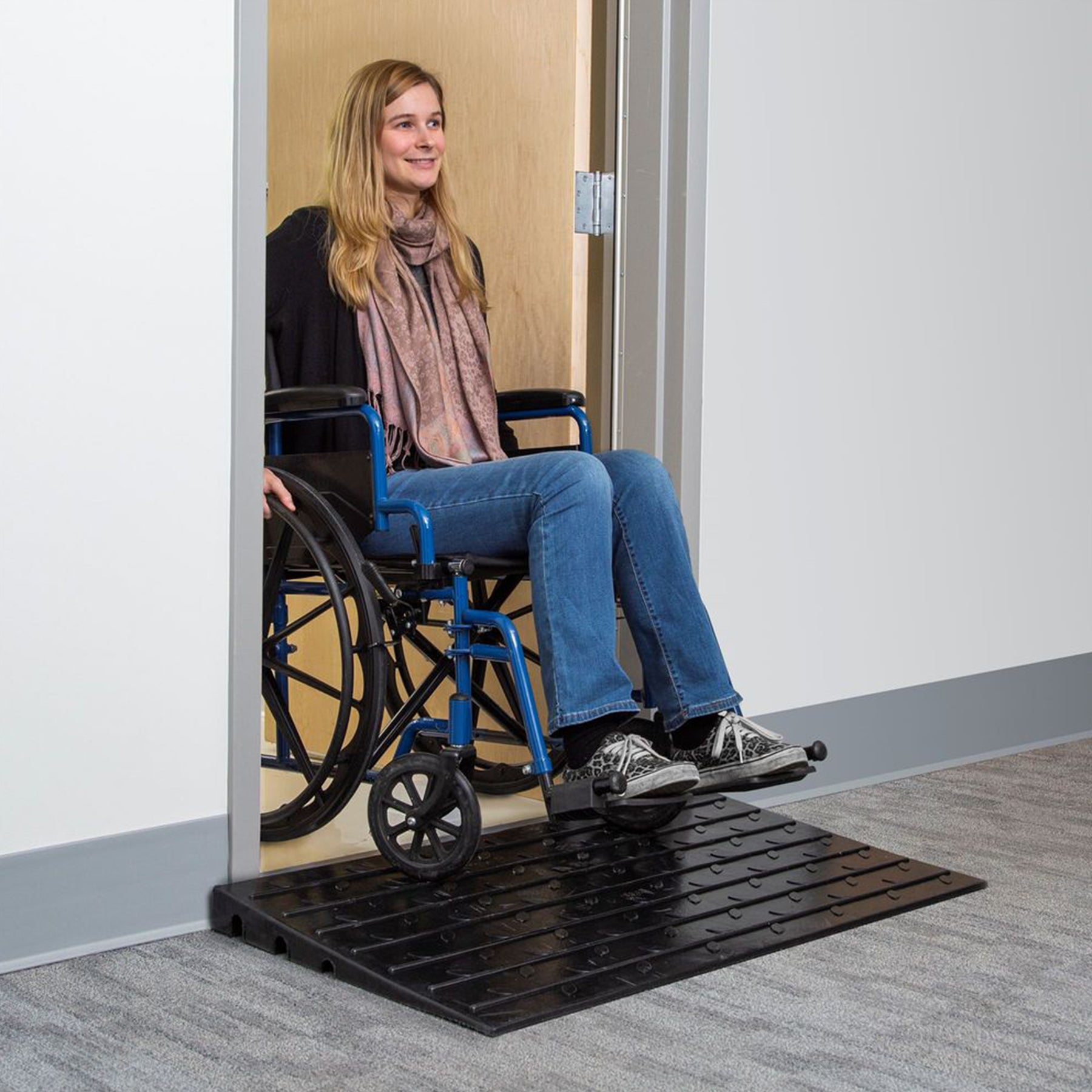• Provides a smooth transition over doorways, curbs, and small steps to use at home or work spaces