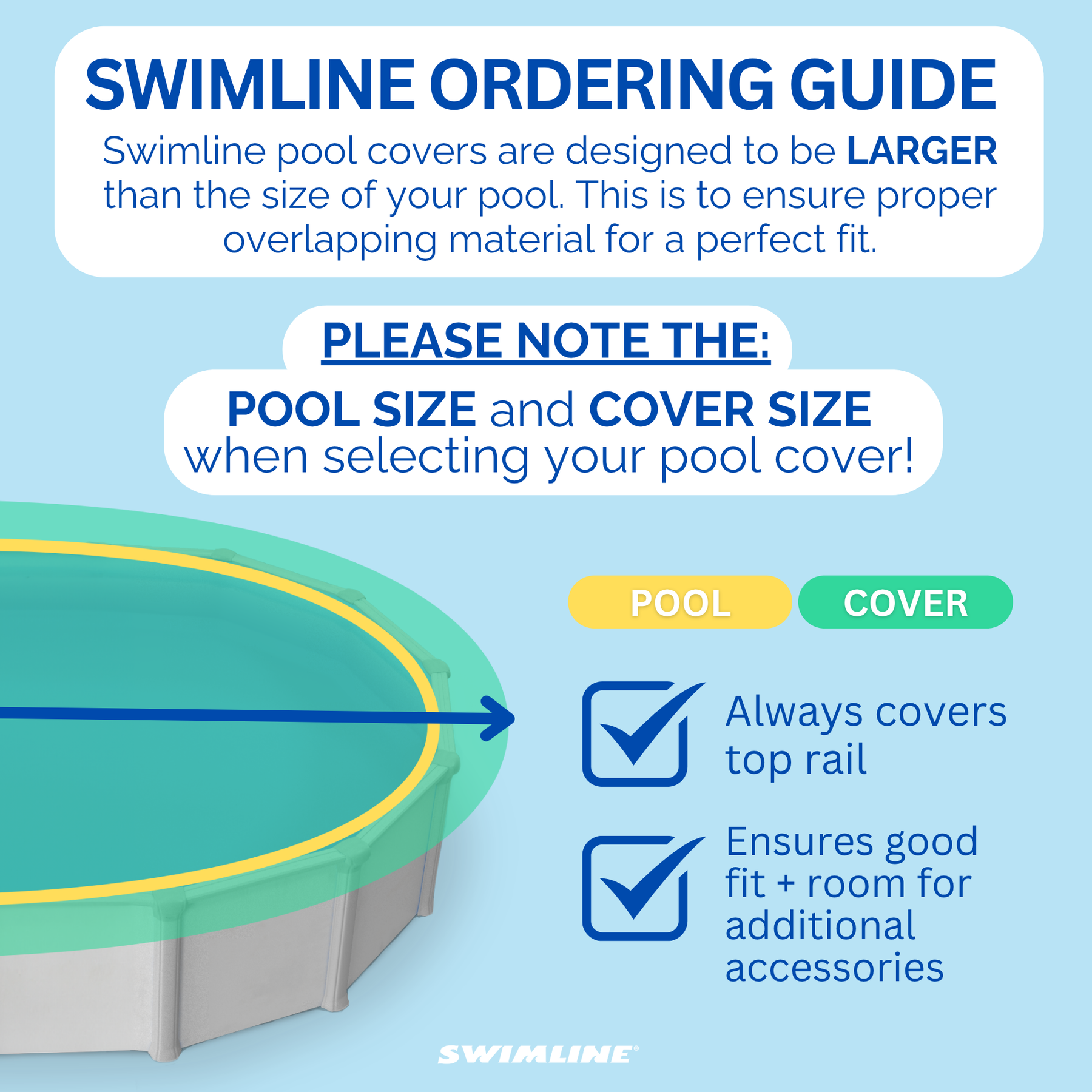 • 3-4 Foot Overlap (cover size is 3-4 ft larger than pool size)