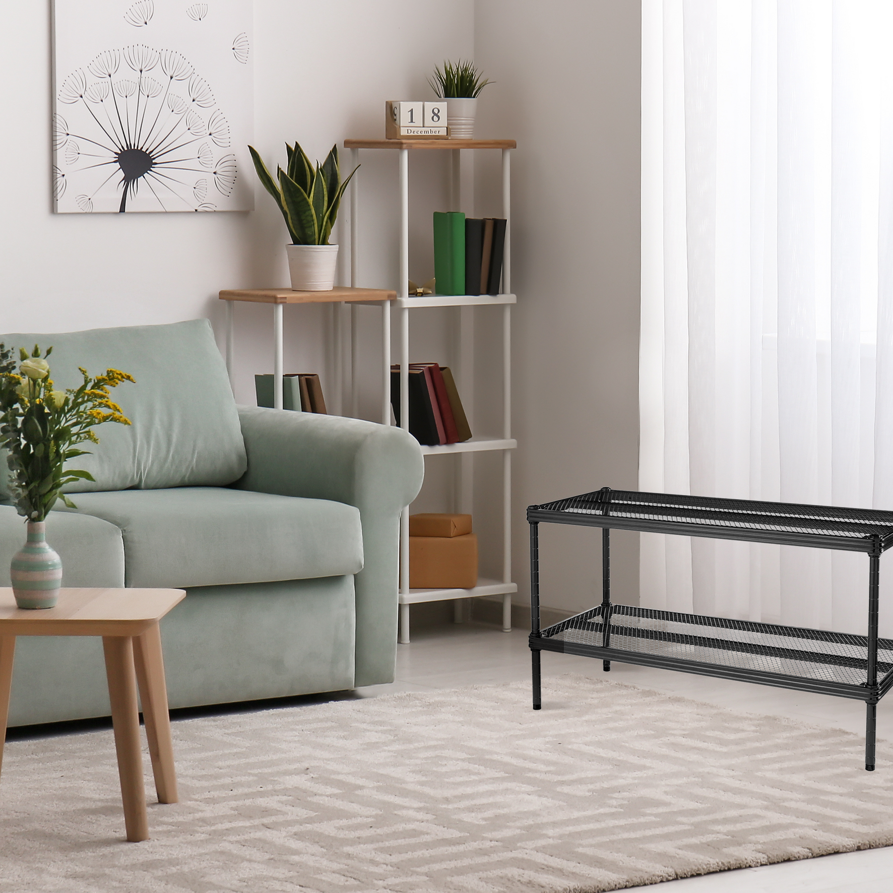 Great for apartments, storage units, basements, living rooms, and more, you can get the most out of your storage space with the Design Ideas MeshWorks 2-Tier Shelving Unit.