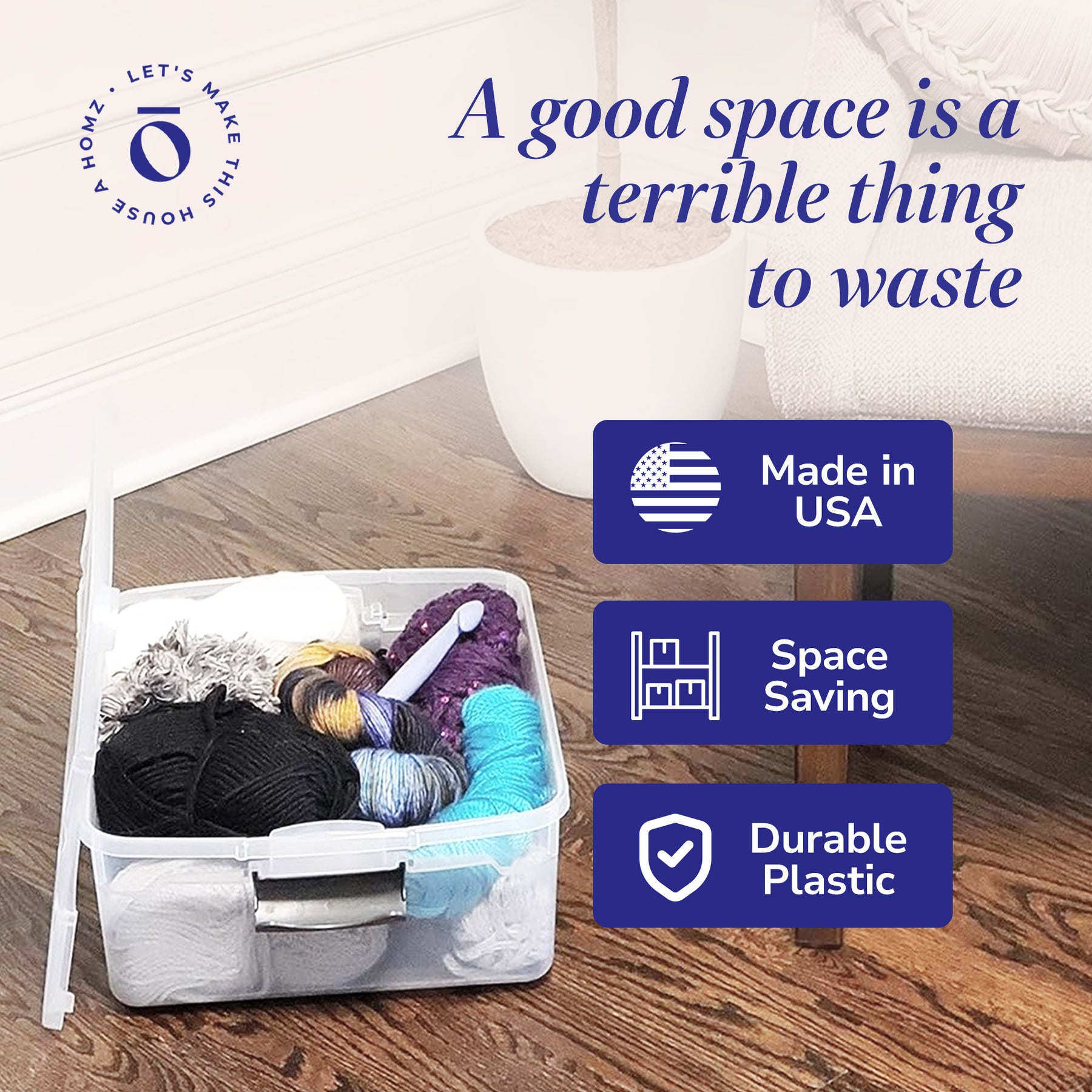 Ideal for a variety of basic household needs, these multipurpose bins can be used to store away clothing items, craft supplies, seasonal decorations, and more. With the spacious 15.5-quart capacity, the opportunities are endless. The ergonomic latching handles lock to secure the lid and provide a comfortable grip for easy carrying. When closing, the lid snaps firmly to the base to ensure all contents stay contained, concealed, and dust-free.