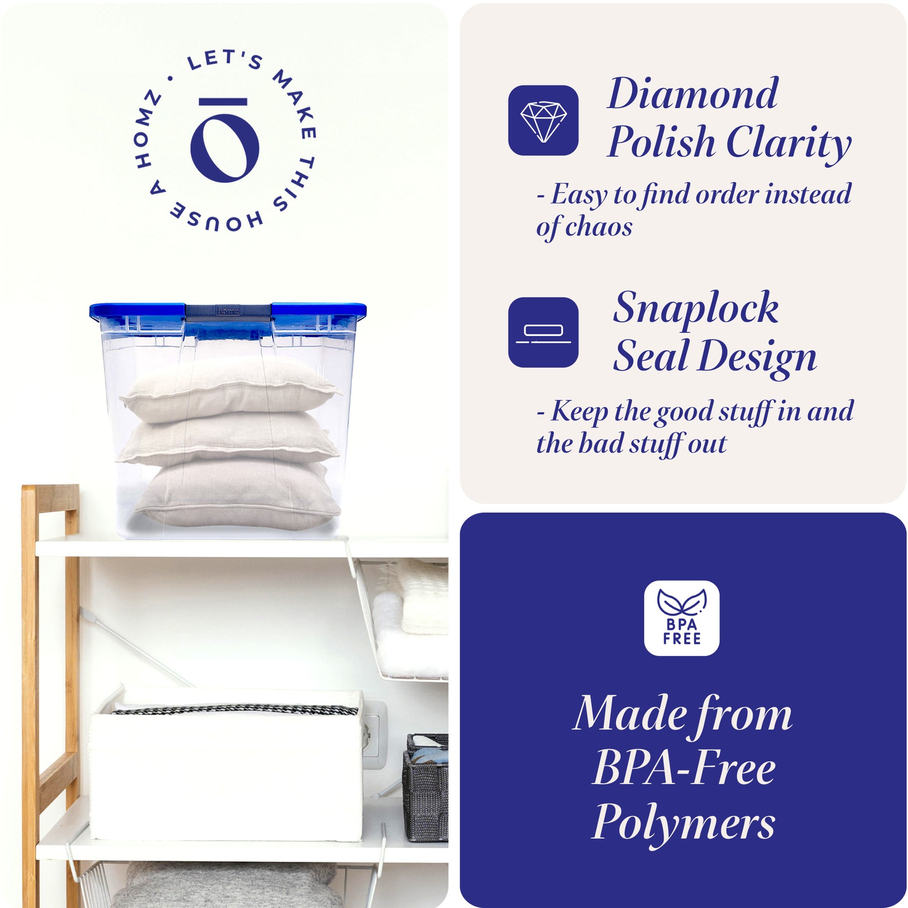 - Extra-large 2 pack of 64-quart storage bins ideal for clothing, office supplies, personal items, and more
