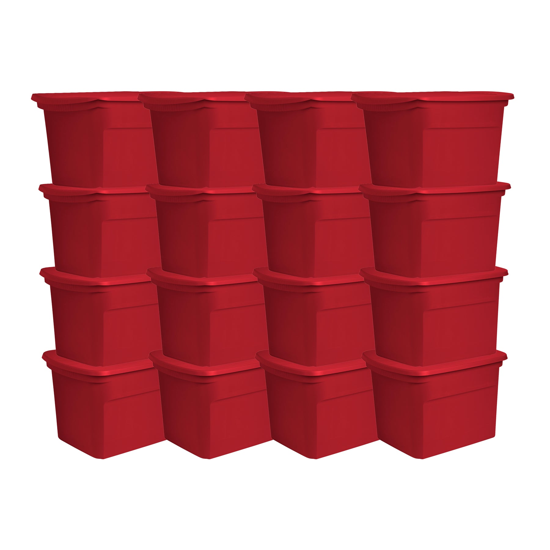 Sterilite 18 Gallon Plastic Stackable Storage Tote Container Bin, Red (16 Pack)