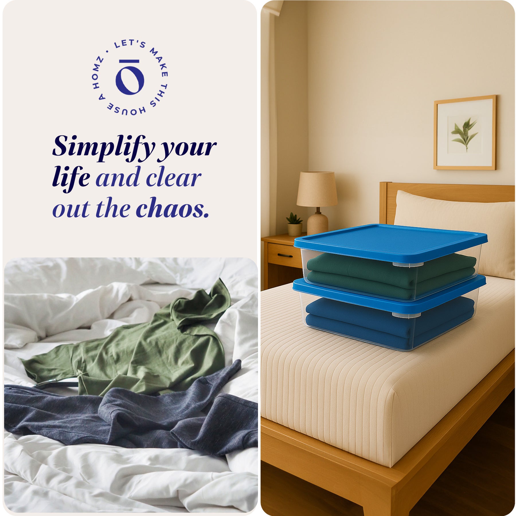 Homz 28 Qt Snaplock Clear Plastic Storage Container Bin with Lid, Blue (2 Pack)
