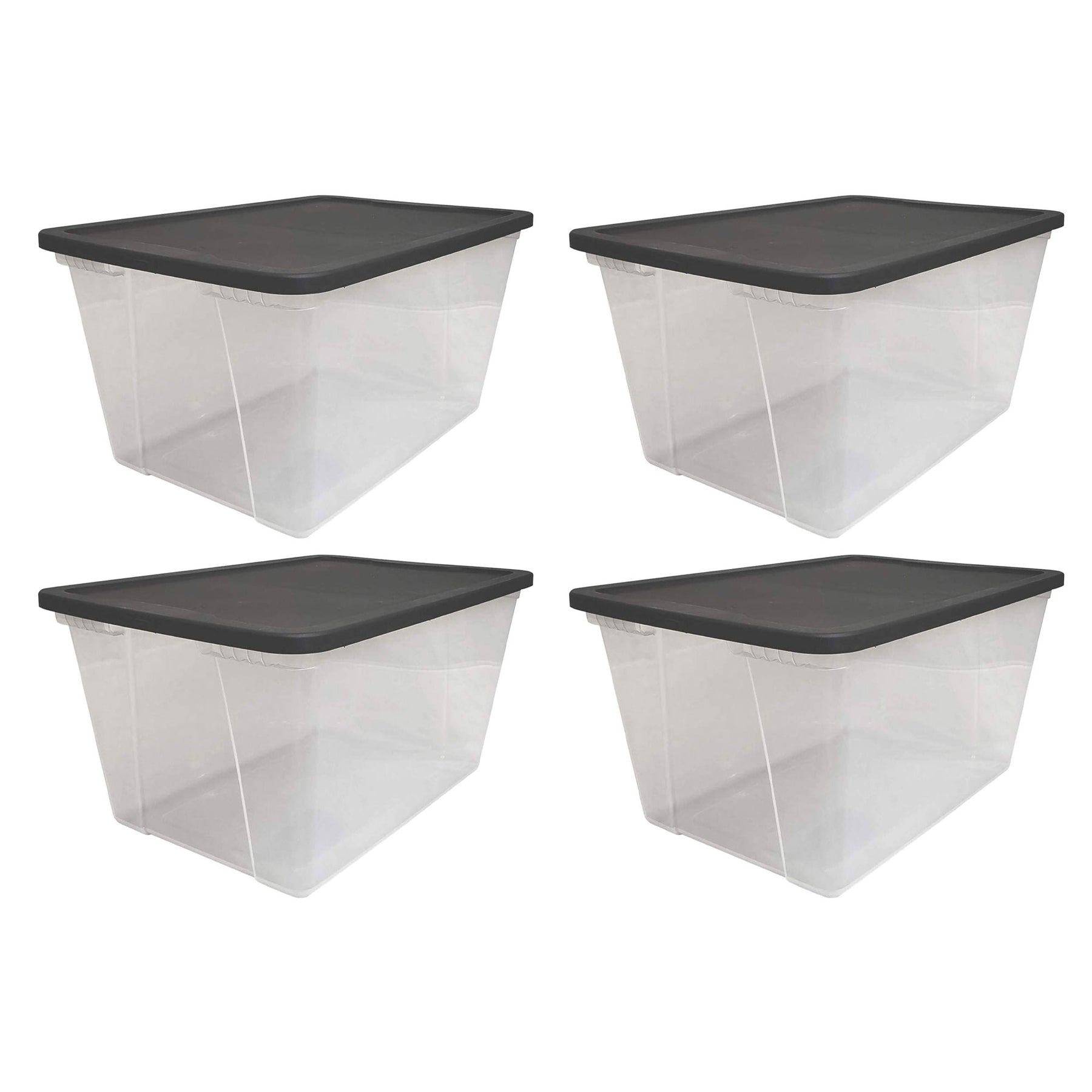 Homz 56 Qt Stackable Plastic Storage Container w/Snaplock Lid, Gray (4 Pack)