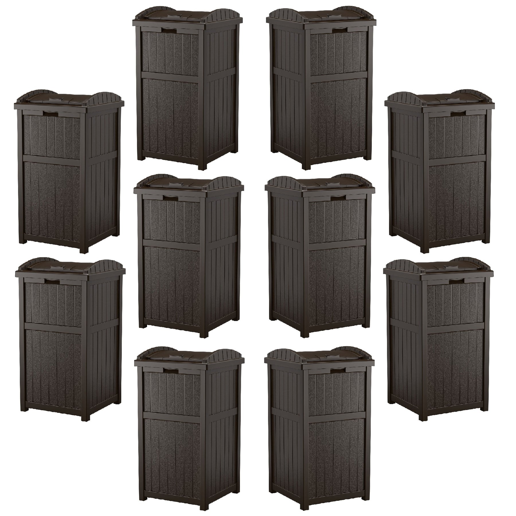 Hide your trash in this stylish outdoor 10-pack of Suncast Trash Hideaway Outdoor Patio 33-Gallon Trash Cans.