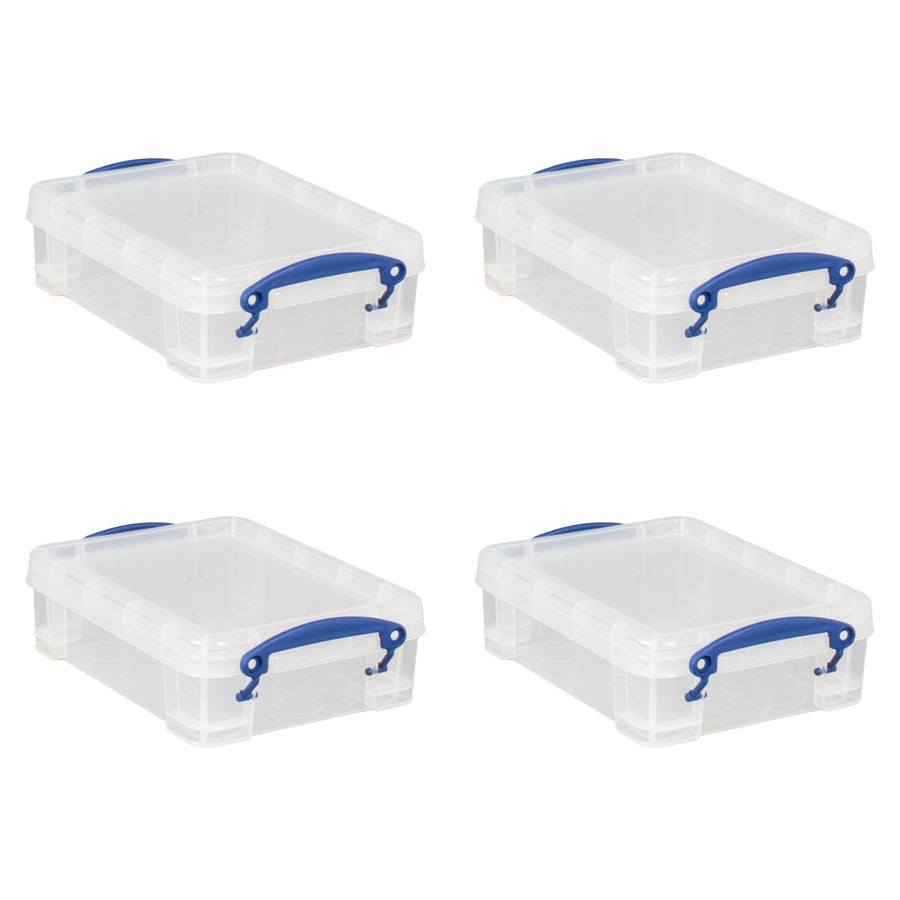 Really Useful Box 1.75L Storage Bin w/Snap Lid & Clip Lock Handle, (4 Pack)