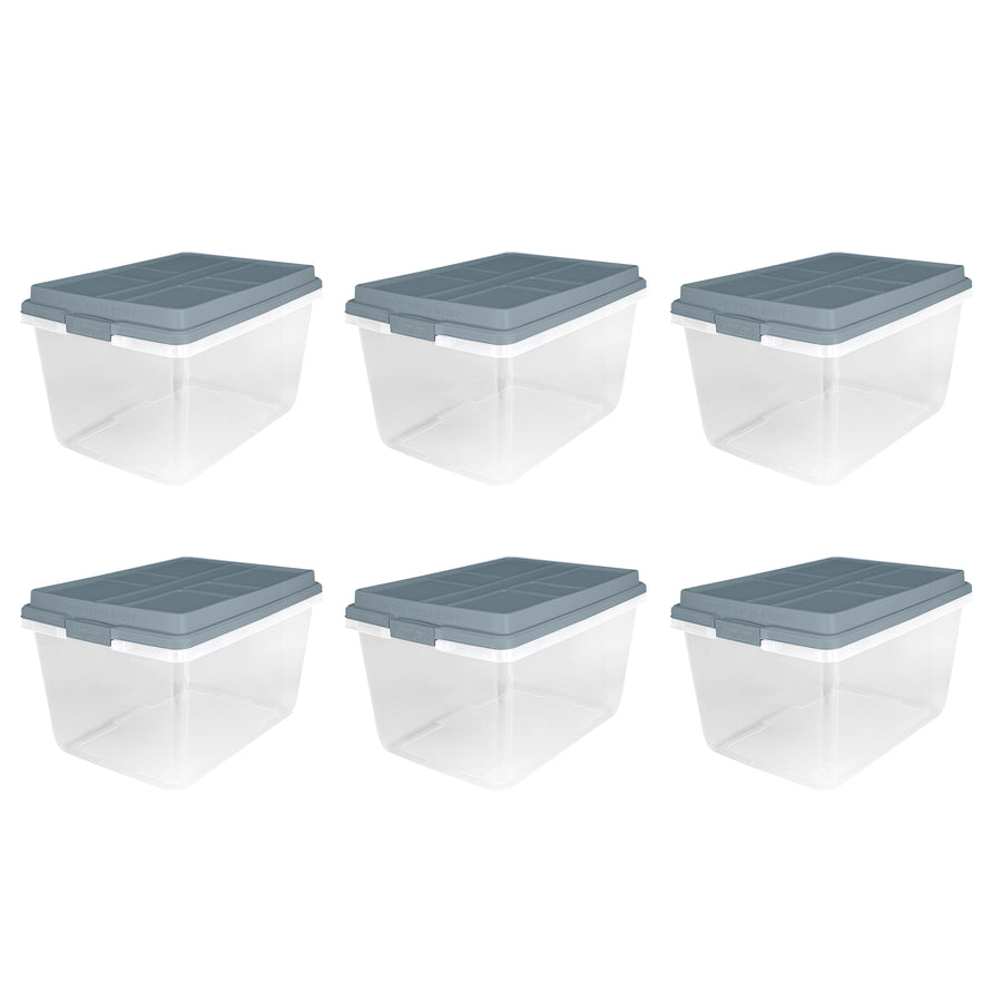 Hefty 72 Qt Hi-Rise Stackable Plastic Storage Bin with Lid, 6 Pack, Smoke Blue