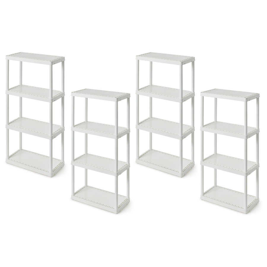 Gracious Living 4 Shelf Fixed Height Light Duty Storage Unit, White (4 Pack)