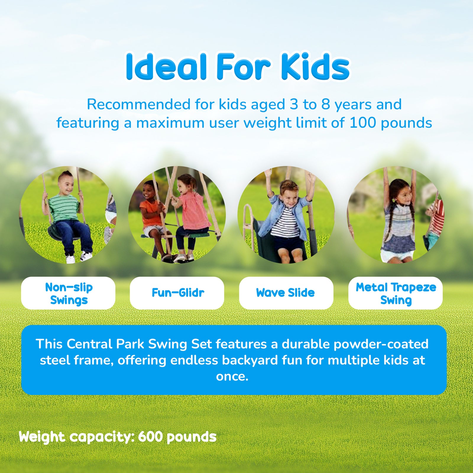- Backyard with this Central Park Swing Set entertains 6 kids simultaneously