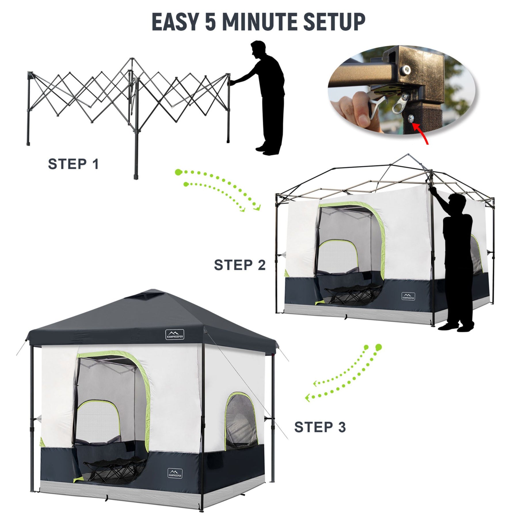 KAMPKEEPER 10x10 Pop Up Canopy with Camping Inner Tent, Fits 6 Person, Black