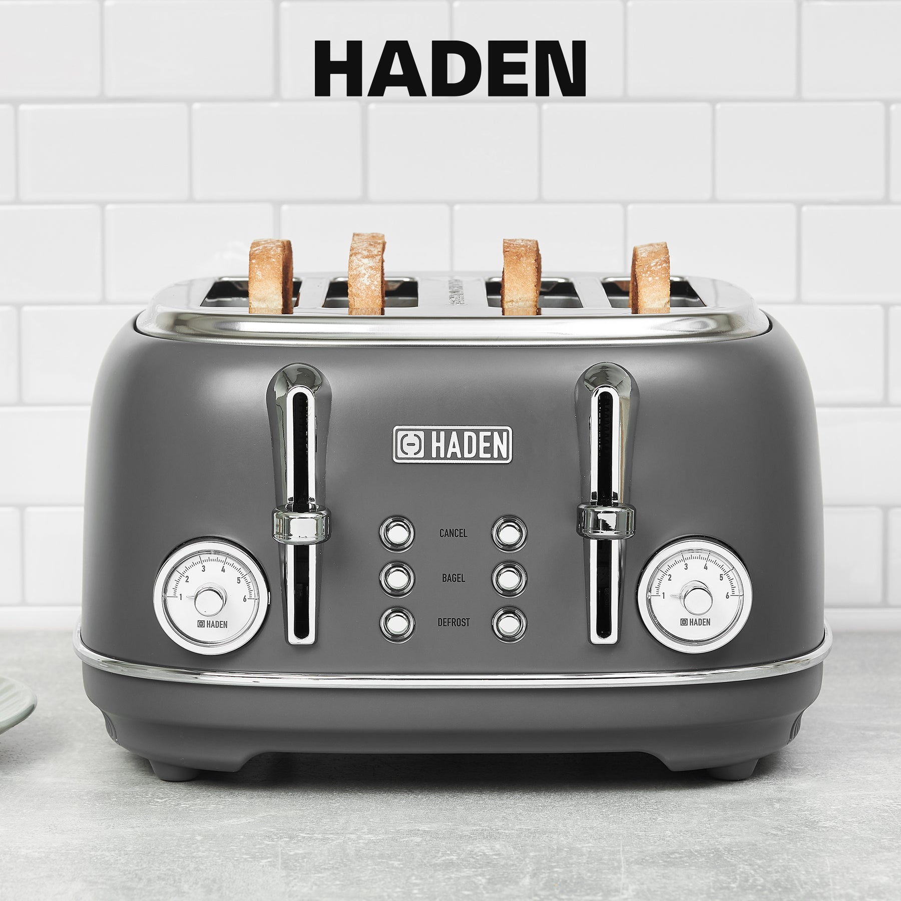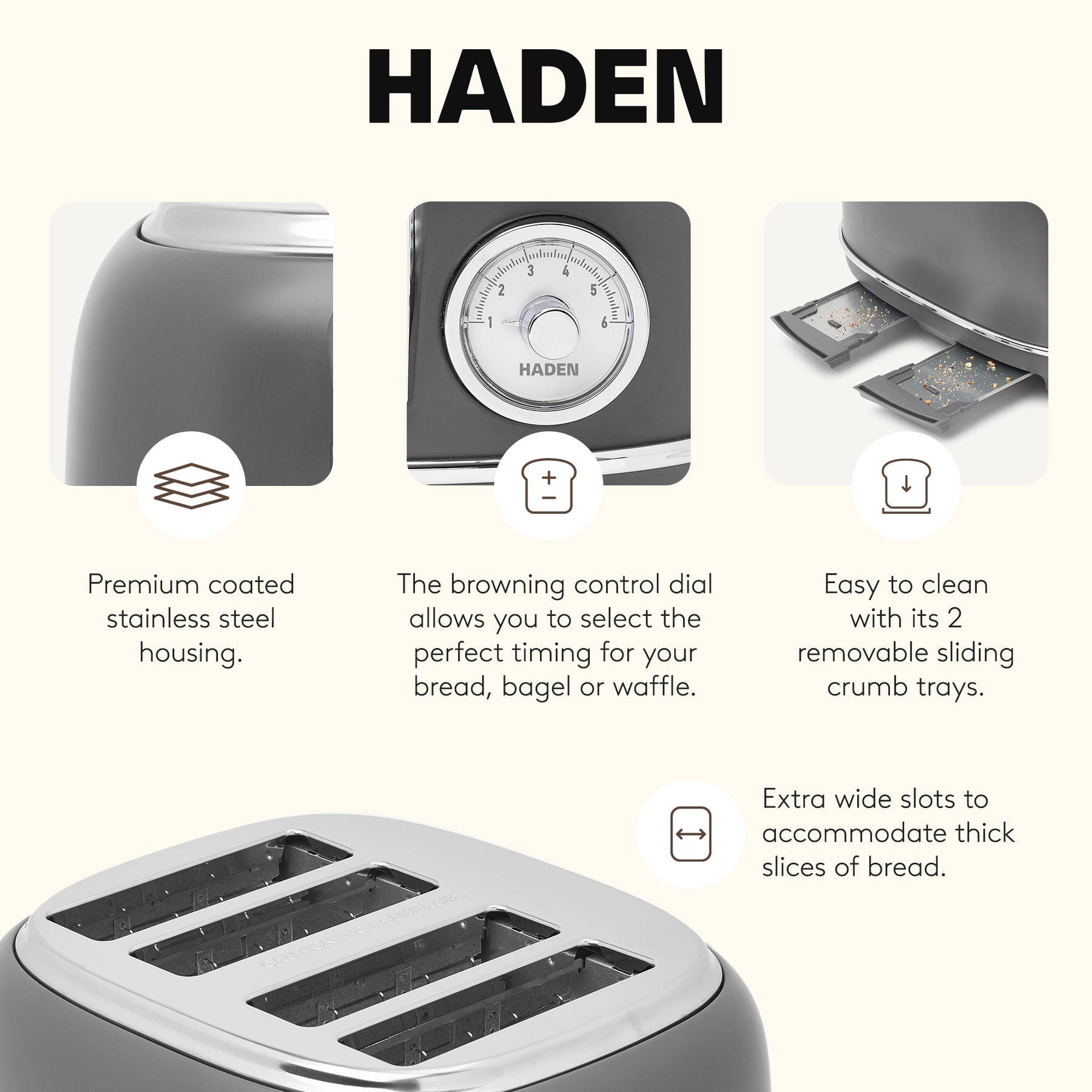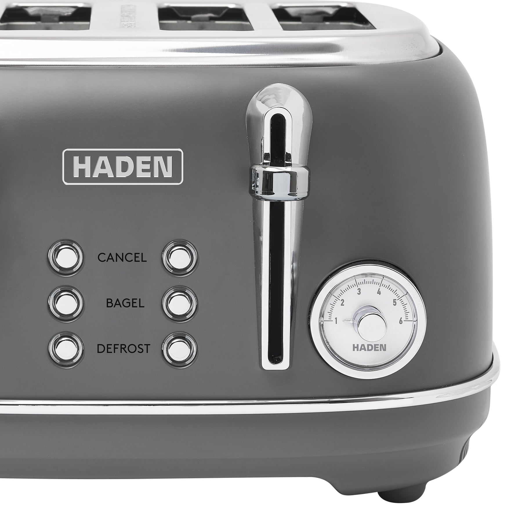 Haden Chelsea Stainless Steel 4 Slice Toaster, Extra Wide Slots, Grey & Chrome
