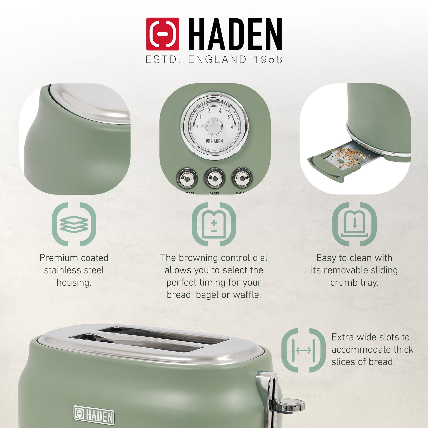 Haden Dorset 2 Slice Wide Slot Stainless Steel Toaster, Cedar Green & Chrome