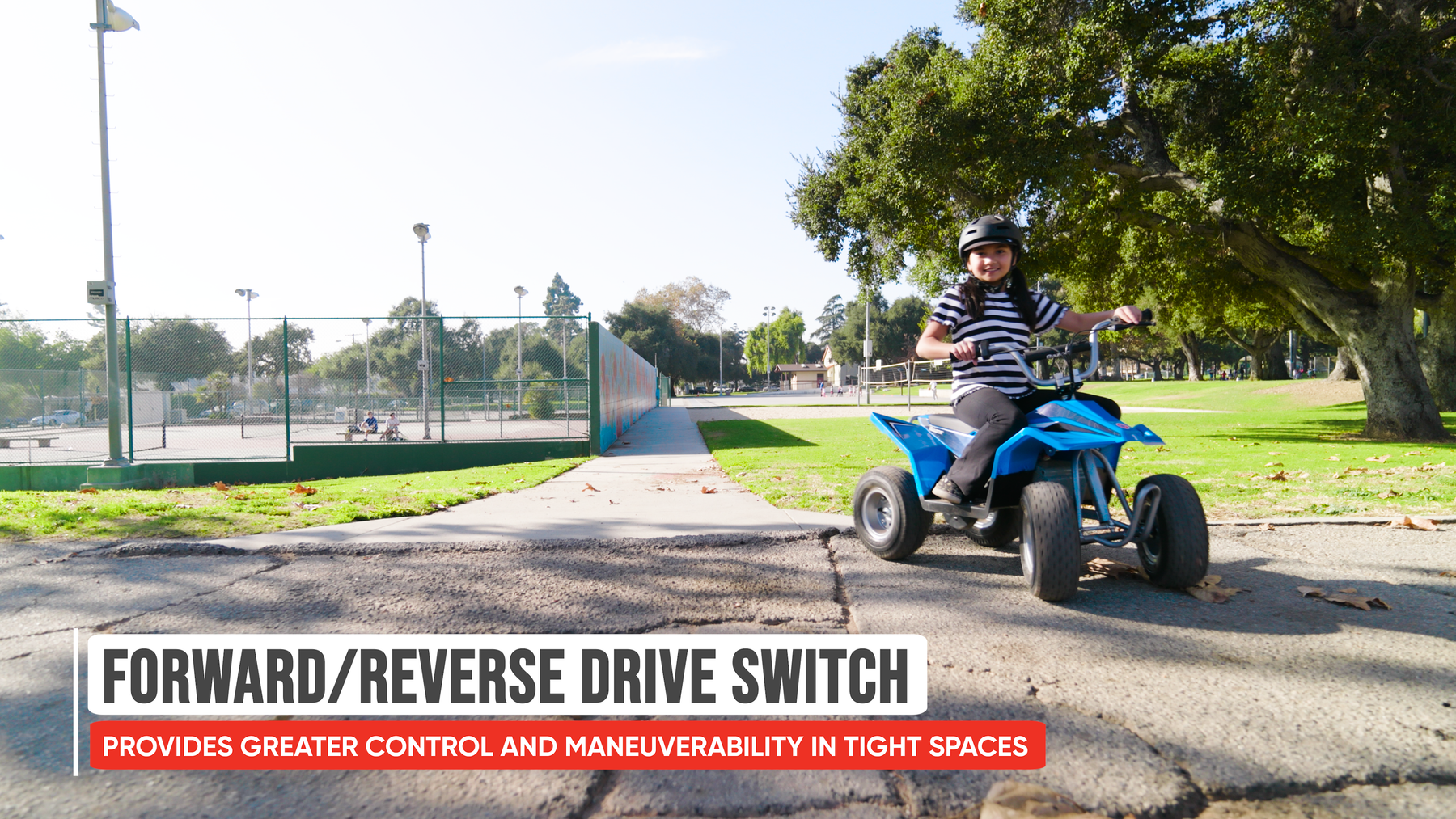 This ATV also comes with a hand-operated rear disc brake, guaranteeing quick and safe stopping. As a kids' ride-on toy, it adds a layer of safety to your child's ride, allowing them to confidently traverse various terrains. The Razor Kids Electric Off-Road Mini Dirt Quad is not just an electric dirt bike for kids ages 8 to 12. It's a 4 wheeled kids dirt bike that serves as a vehicle for adventure, exploration, and fun, making it the perfect gift for your adventurous child.