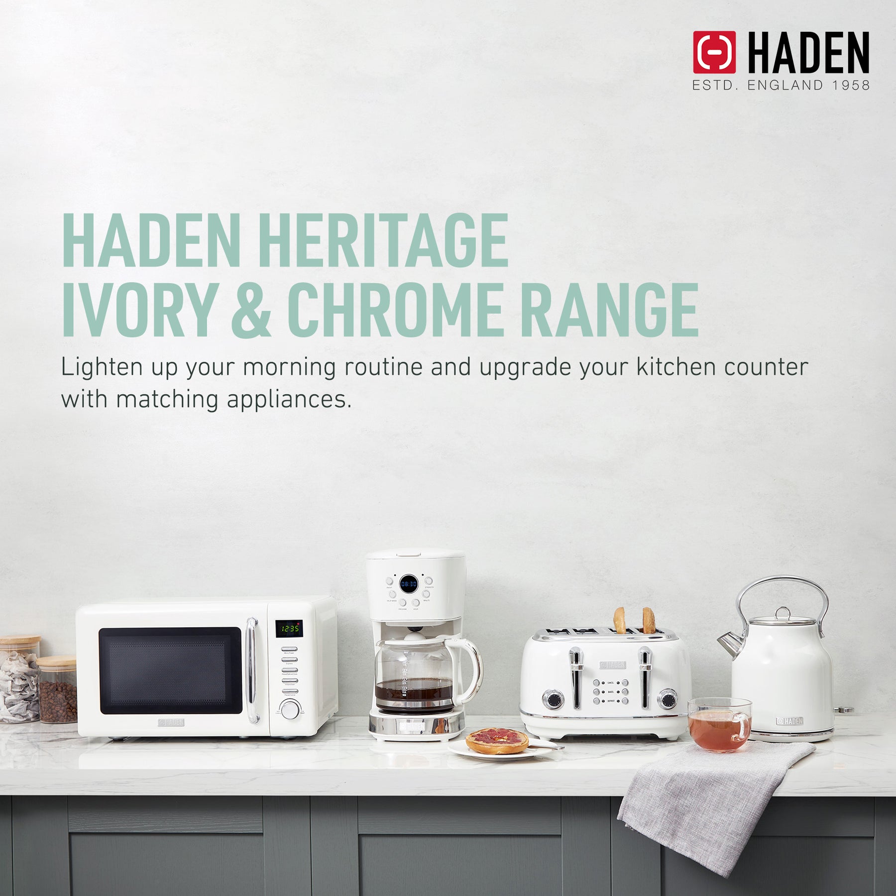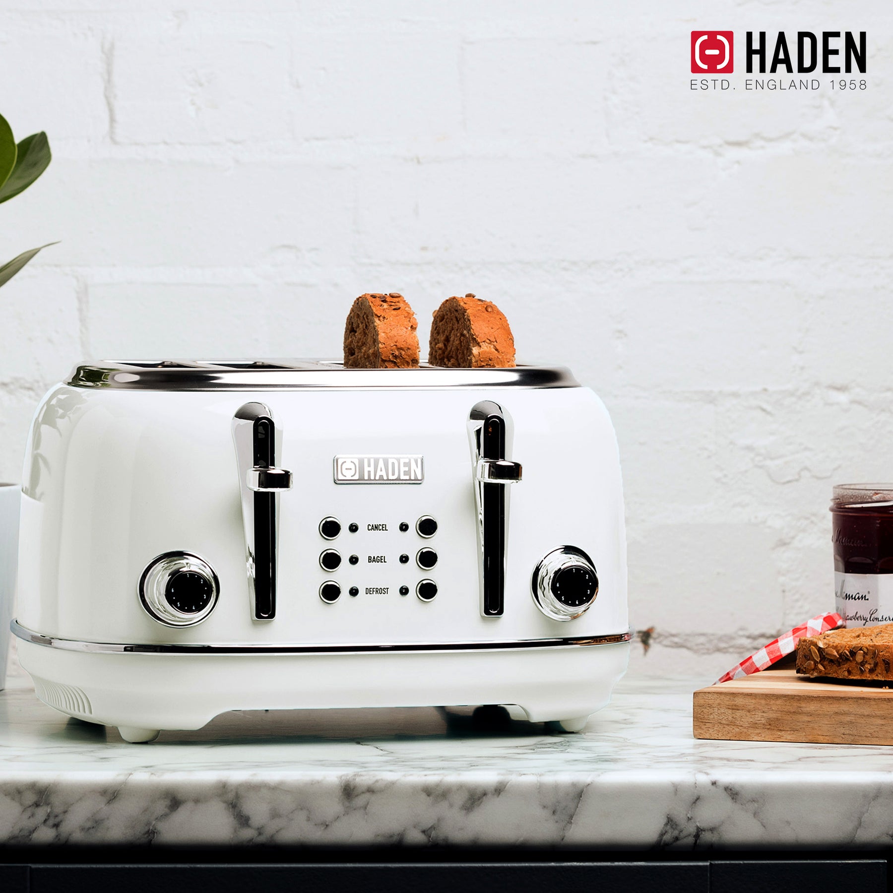 Haden Heritage 4 Slice Wide Slot Stainless Steel Toaster, Ivory/Chrome(Open Box)