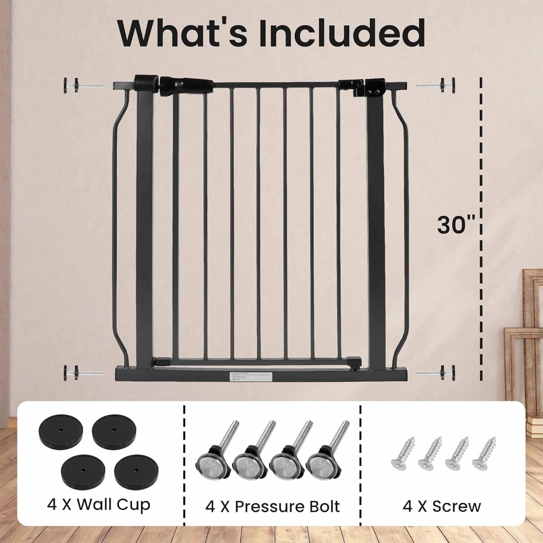 • Wall-to-wall auto-close baby and pet gate is ideal for keeping your family safe and sound