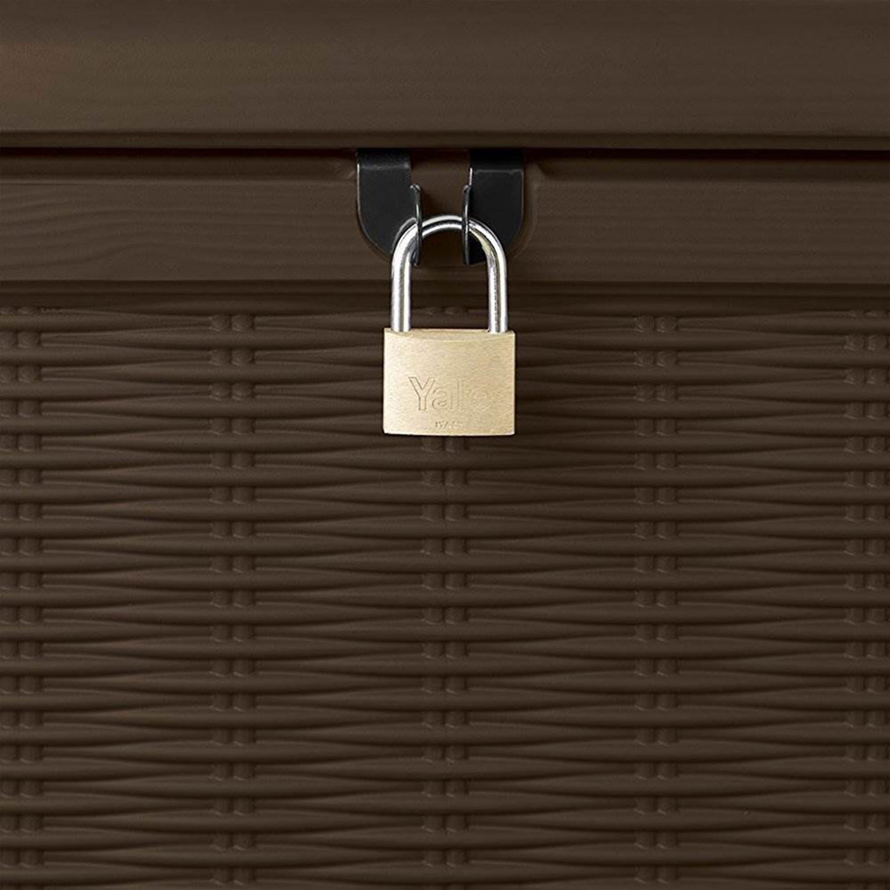 • Large, 110-gallon outdoor storage box is built to store patio accessories, cushions, pool toys, garden tools, and more
