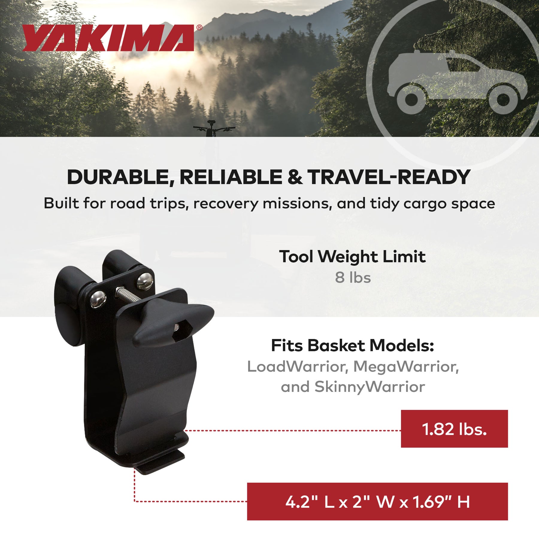 Transport your axe or shovel with ease with the YAKIMA Axe or Shovel Bracket that secures a single shovel or axe to your Warrior Cargo Basket. Ensure that you won't get stuck in a situation where an axe or shovel is needed with this cargo bracket that will give you the storage option you require.