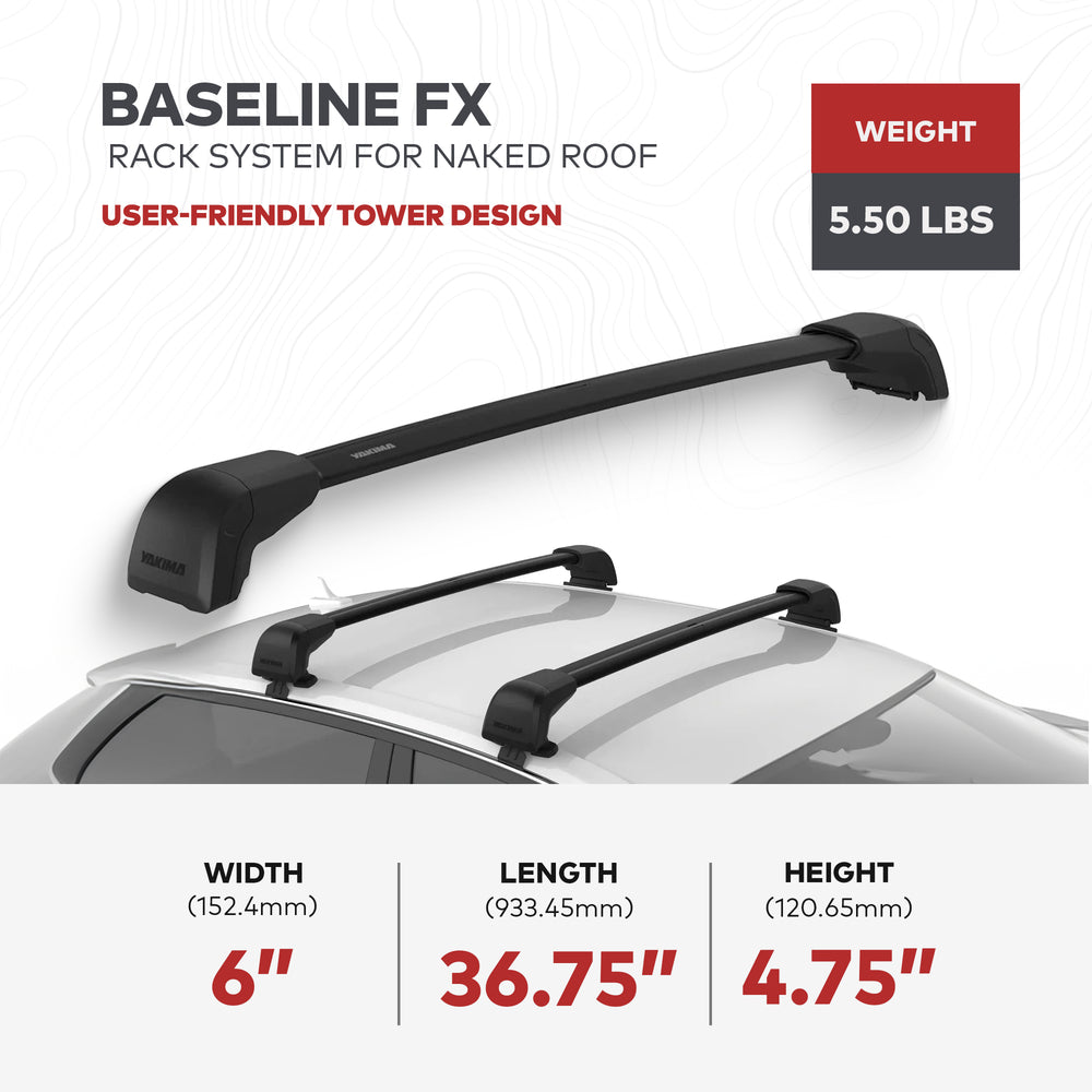 Yakima BaseLine FX 2XL Single Integrated Crossbar for Naked Roof Vehicles, Black