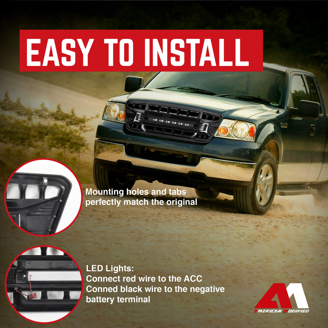 AMERICAN MODIFIED Armor Grille Compatible with 2004-08 Ford F150, Glossy Black