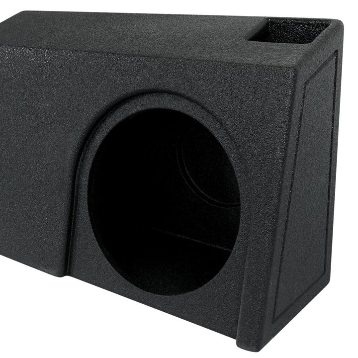 Add an extra kick to your truck's sound system using this durable, high-quality sub box. Resting underneath the rear seats of your Ford truck, the speaker enclosure integrates seamlessly into your audio setup. Displaying 1 cubic foot of air space per sub with an 8.75-inch mounting depth, the box holds (2) 10-inch subwoofers that produce strong tones, enhancing your audio setup with low, powerful bass. Finished with a durable bed liner spray, the speaker box looks great in your truck, blending in while providing maximum bass.