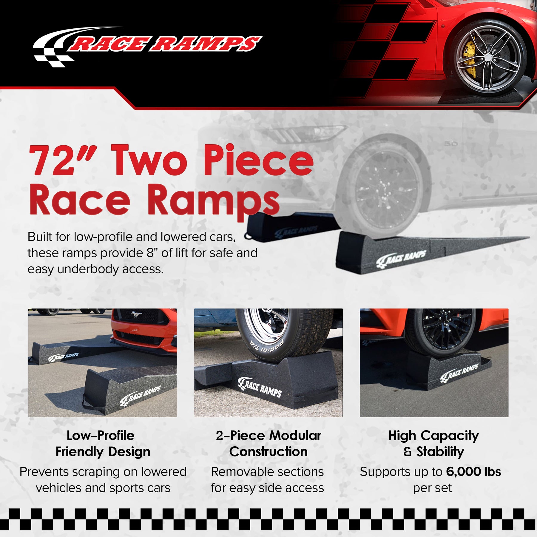 - Perfect for low-profile cars, with a 10.75-degree incline for easy access