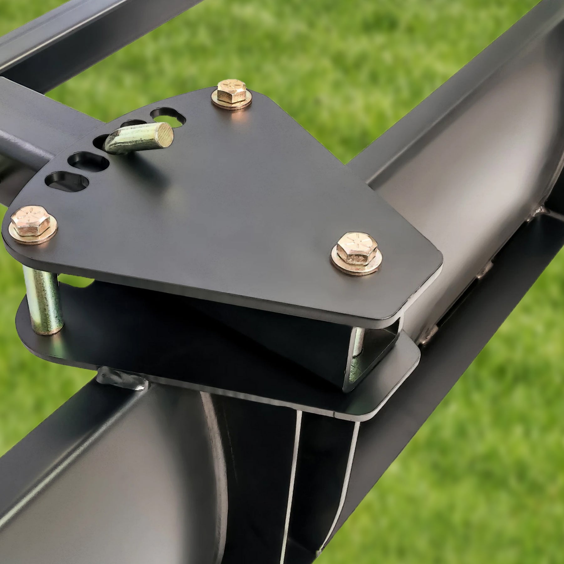 The atv scrape blade hitch attachment is made from thick steel with a protective, rustproof, powder-coated black finish. Its pin installation design makes attaching the blade to your hitch and removing it again effortless, even if you're working alone. Easily adjust the angle of the blade in either direction to fit your specific task's needs.