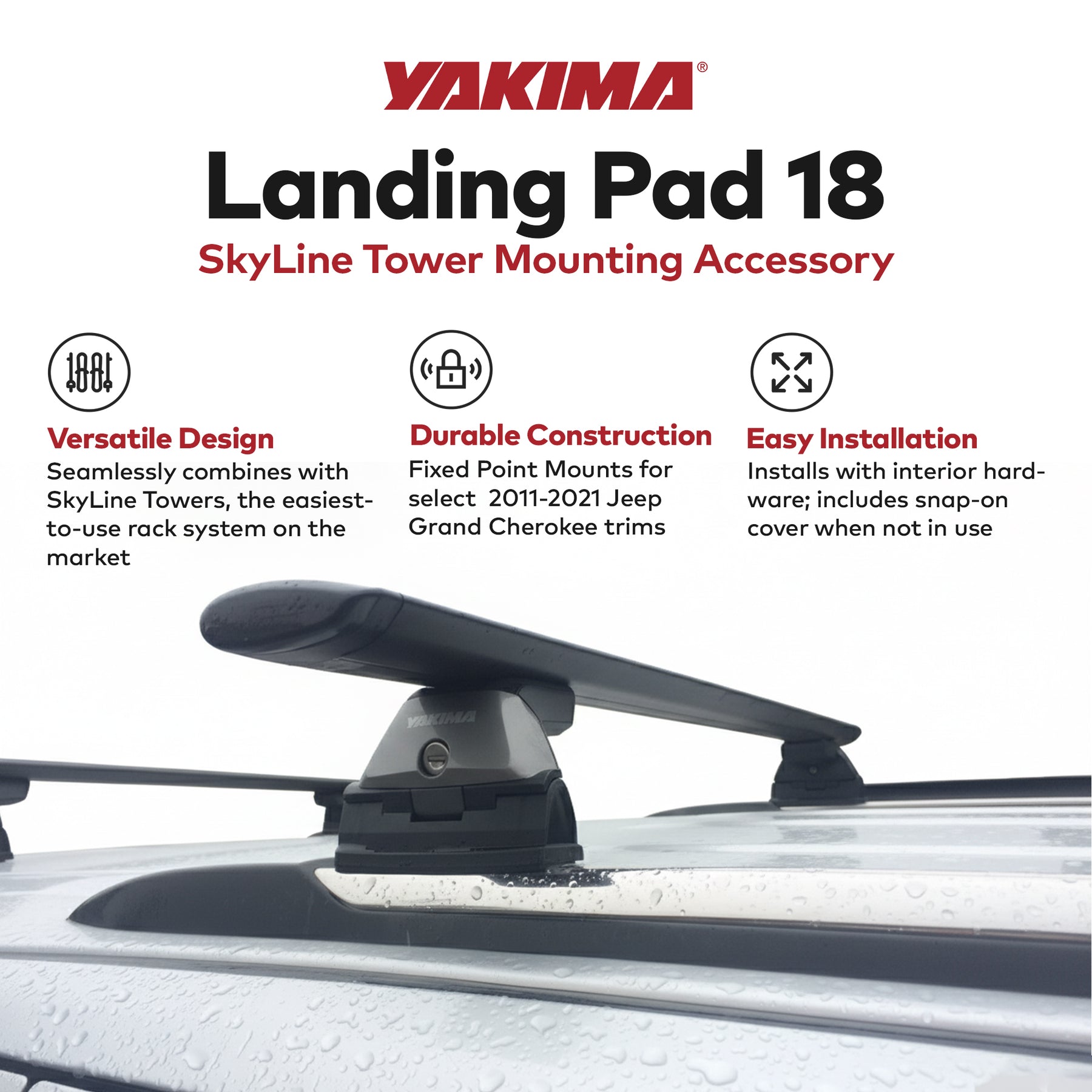 YAKIMA Landing Pad 18, Fixed Point Mounts for 2011-2021 Jeep Grand Cherokee