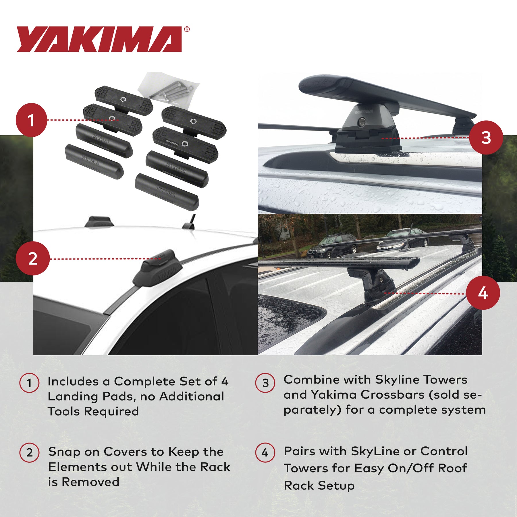 Embrace the future of rooftop rack systems with the YAKIMA Landing Pad 18, an embodiment of precision, convenience, and limitless possibilities for your next expedition.