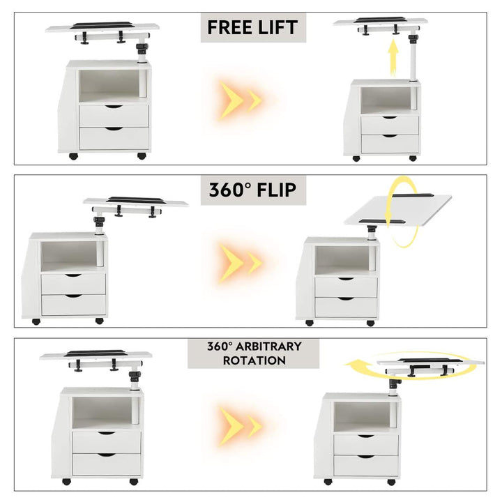 EROMMY Swivel Top Adjustable Height Bedside End Table w/Storage Drawers, White