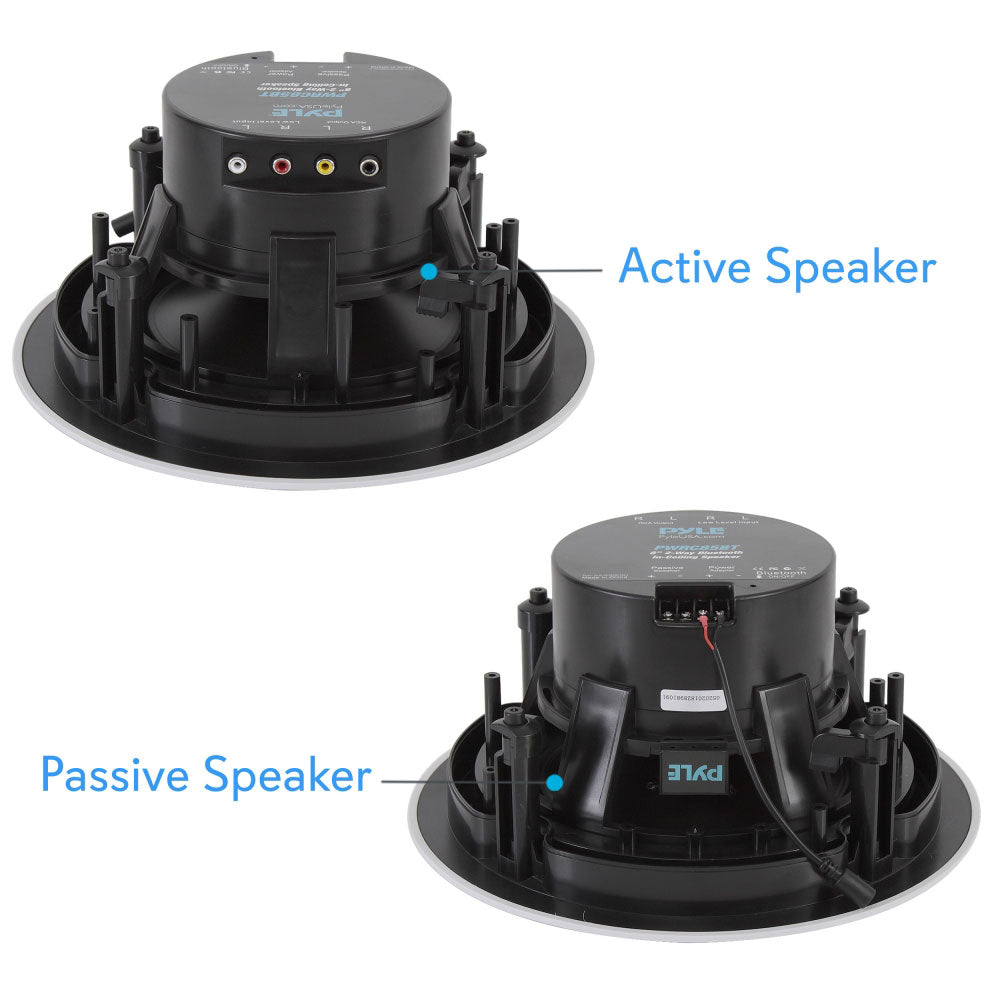 • Active + Passive speaker system comes with (1) 8-inch active speaker, (1) 8-inch passive speaker, (2) 9.8-foot speaker connection wires, cut-out template, and power adapter
